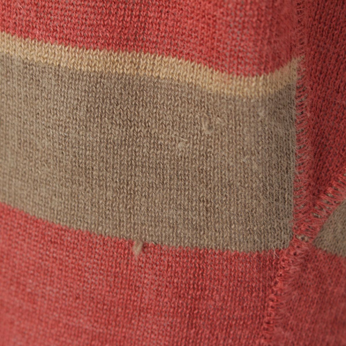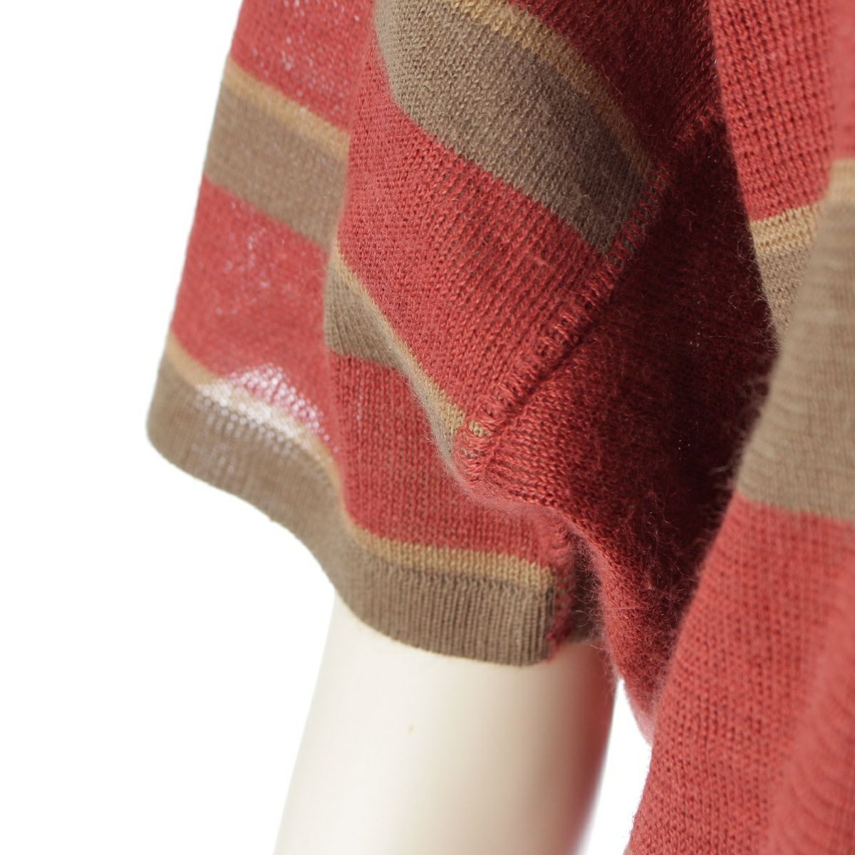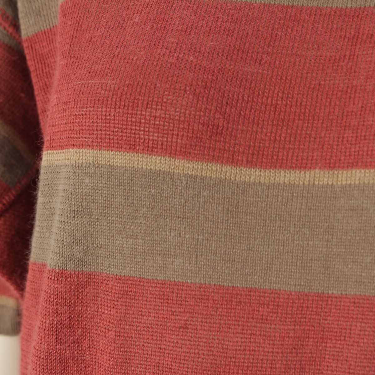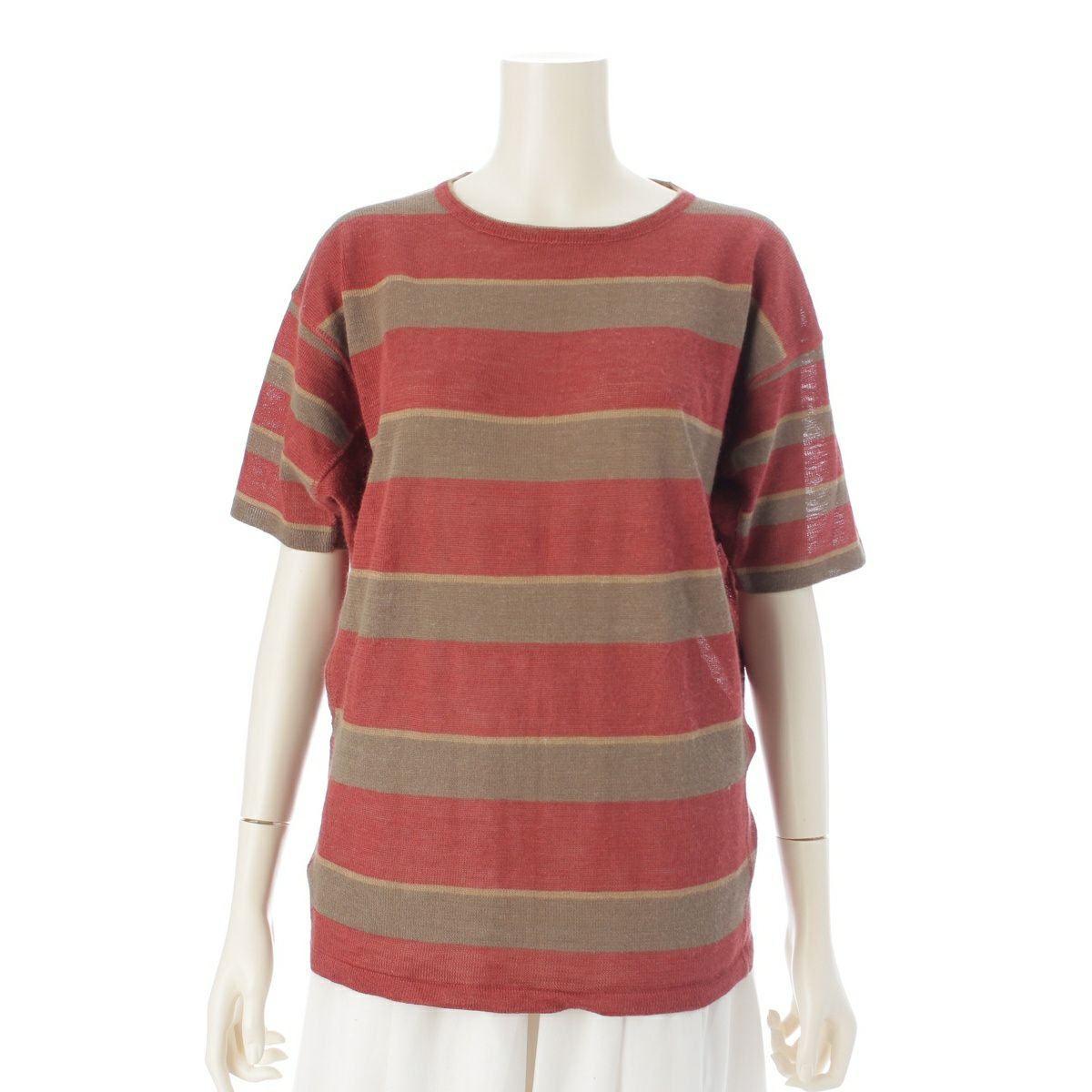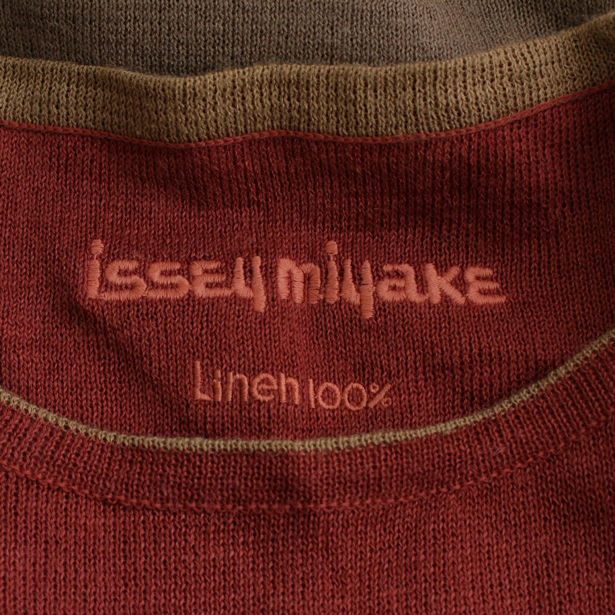 イッセイミヤケ リネン 初期 刺繍 変形 ドルマンスリーブ マルチボーダー トップス レッド