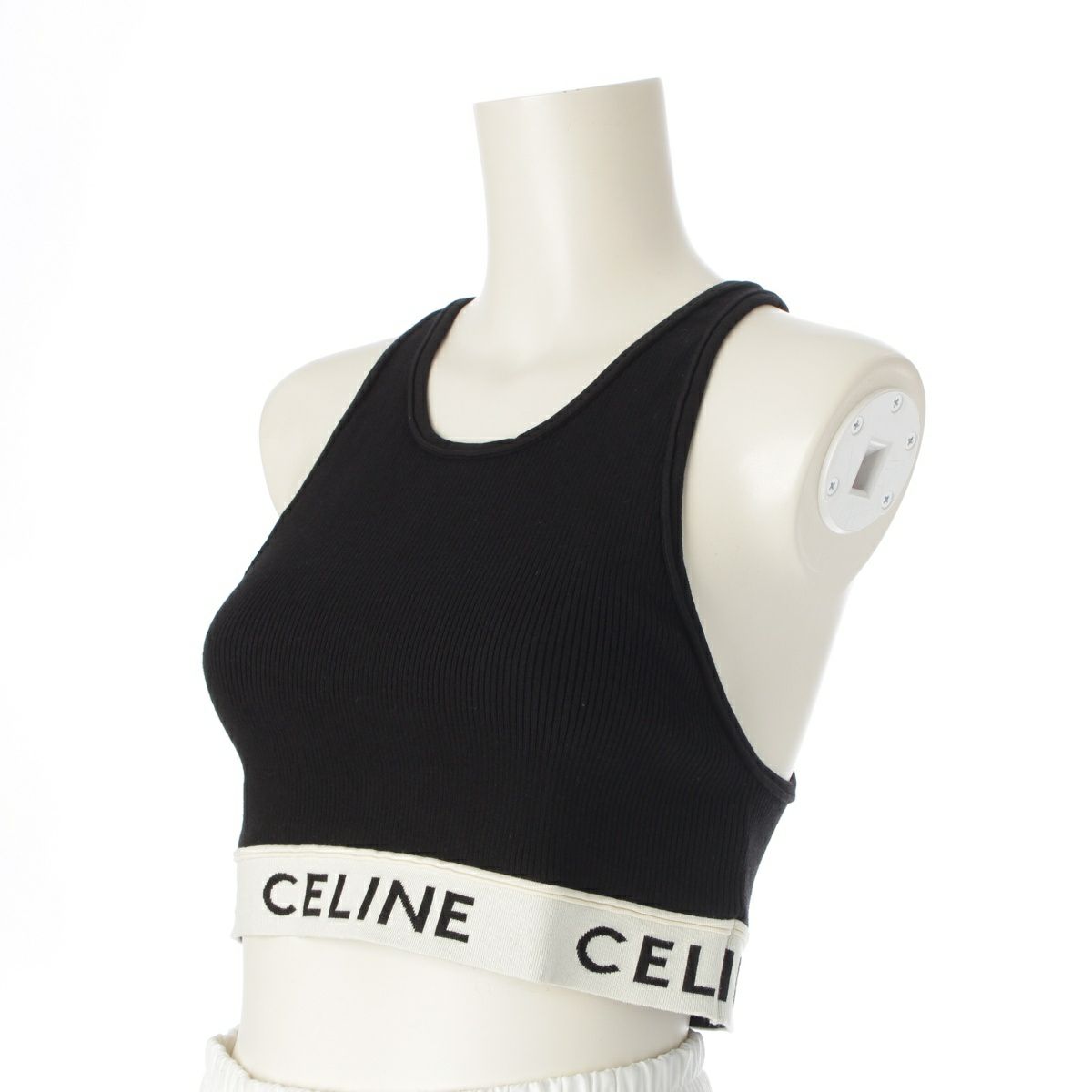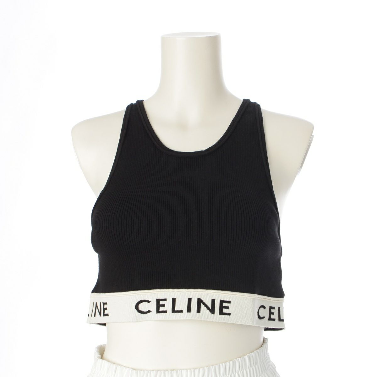 セリーヌ コットン ロゴ クロップド タンクトップ ノースリーブ トップス 2A68L372N ブラック ホワイト M