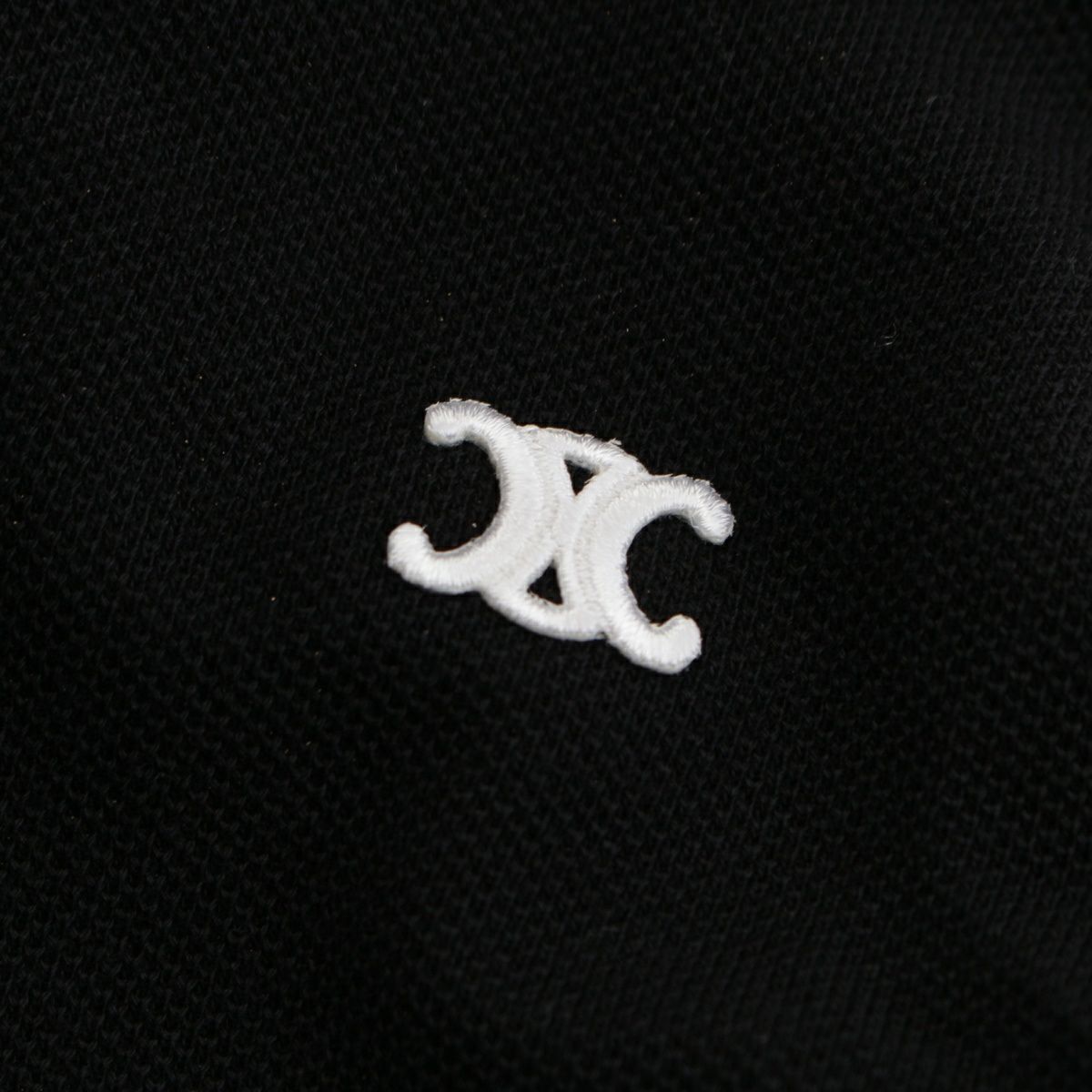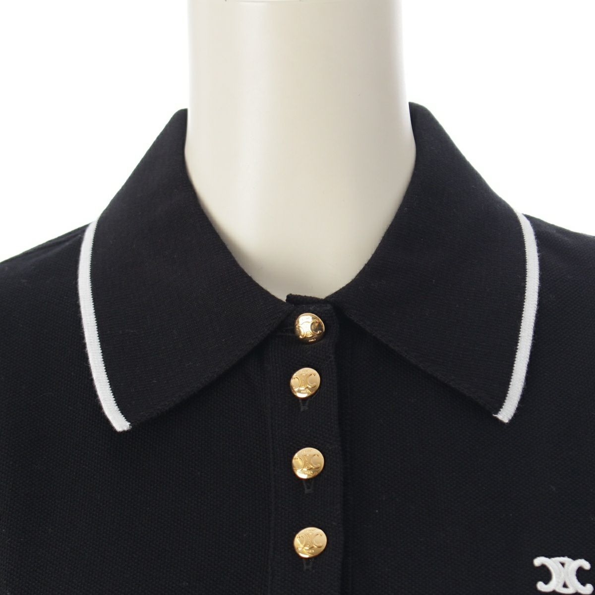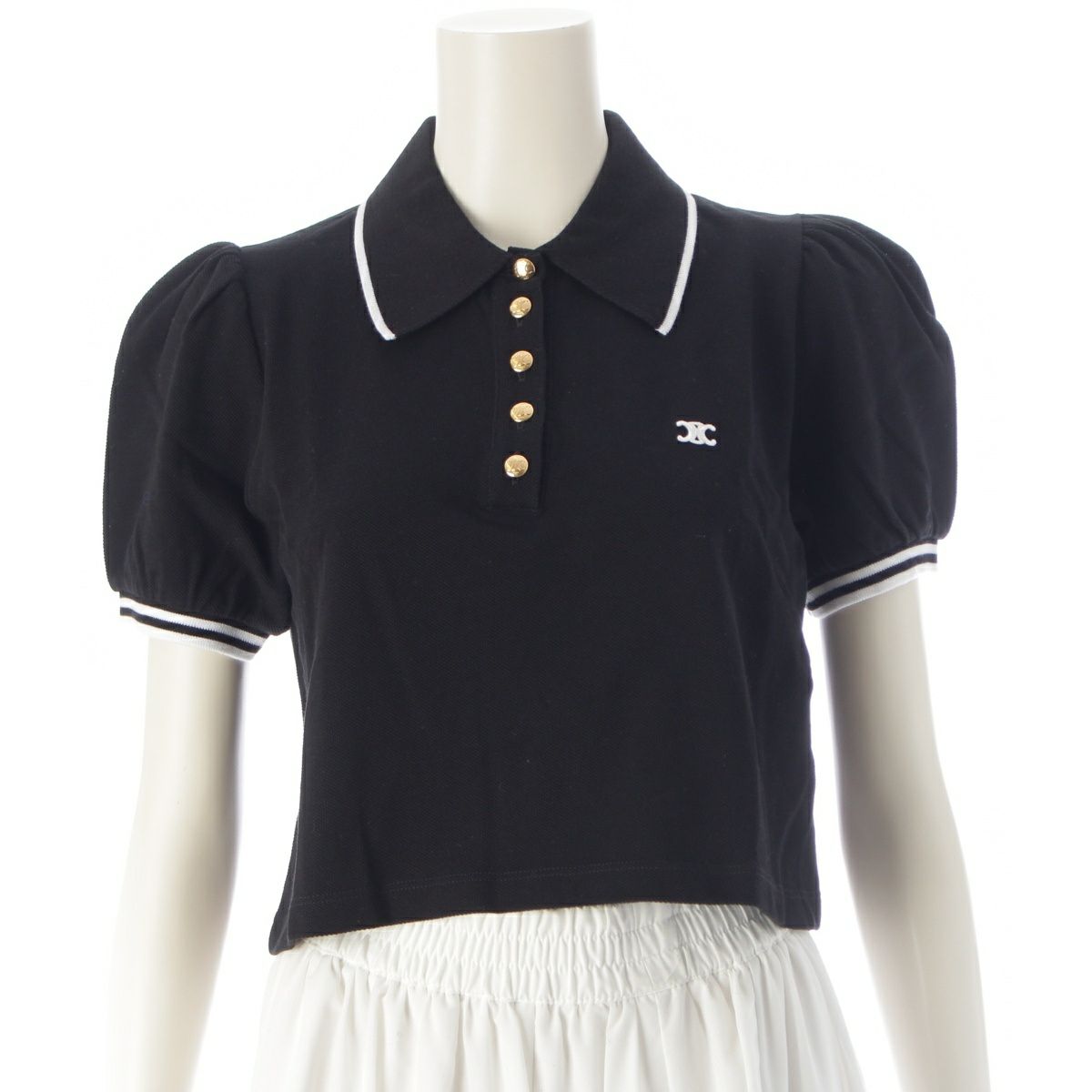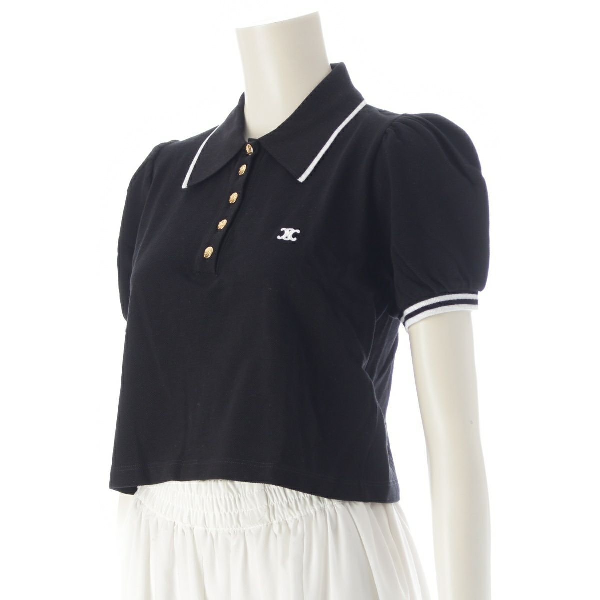 セリーヌ 23SS コットン トリオンフ刺 パフスリーブ 金ボタン ポロシャツ 2X29E043F ブラック S