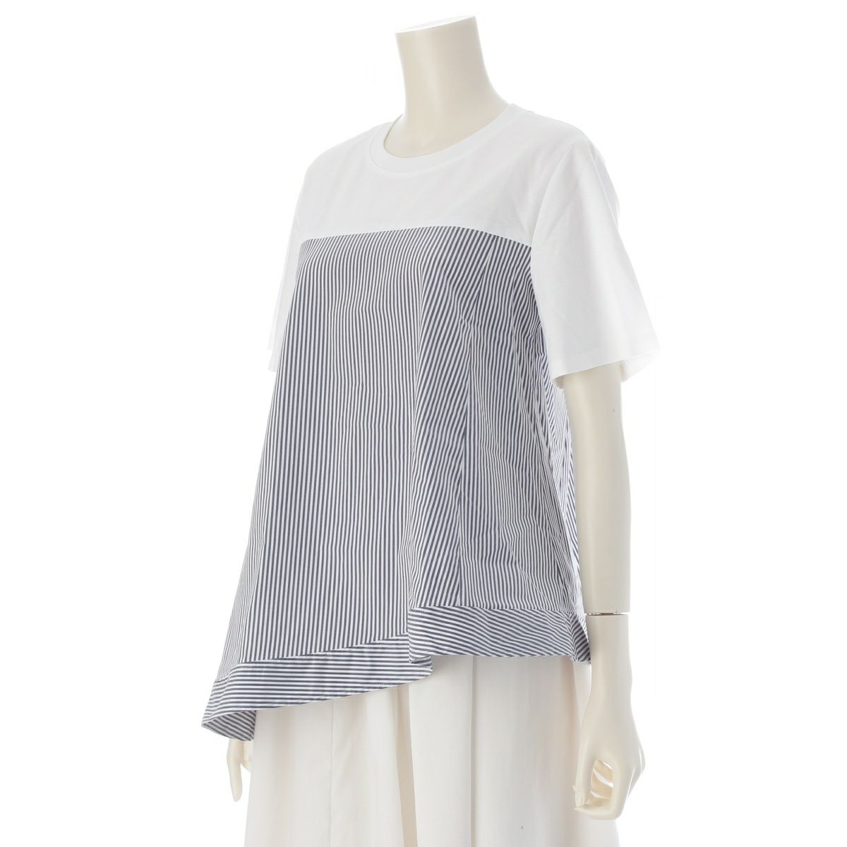 アディアム 25年 コットン Greta グレタ 異素材 ドッキング ストライプ 半袖Tシャツ トップス 45521 ホワイト ブルー 2