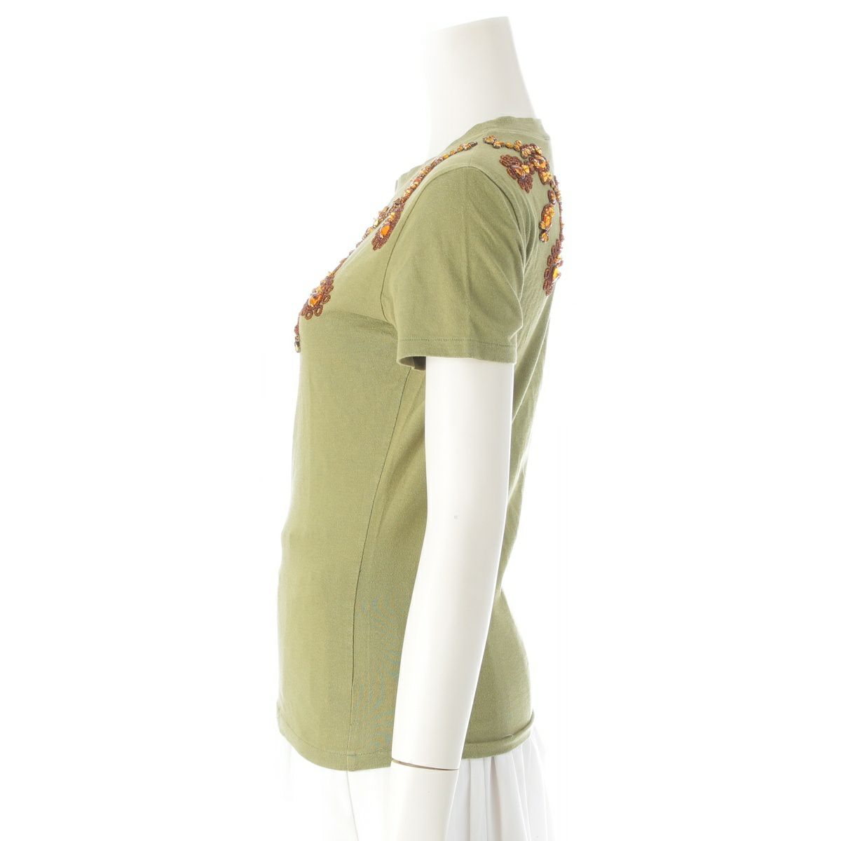 クリスチャンディオール 2002年 02AW ガリアーノ期 ビジュー クルーネック 半袖Tシャツ トップス カーキ オレンジ 38