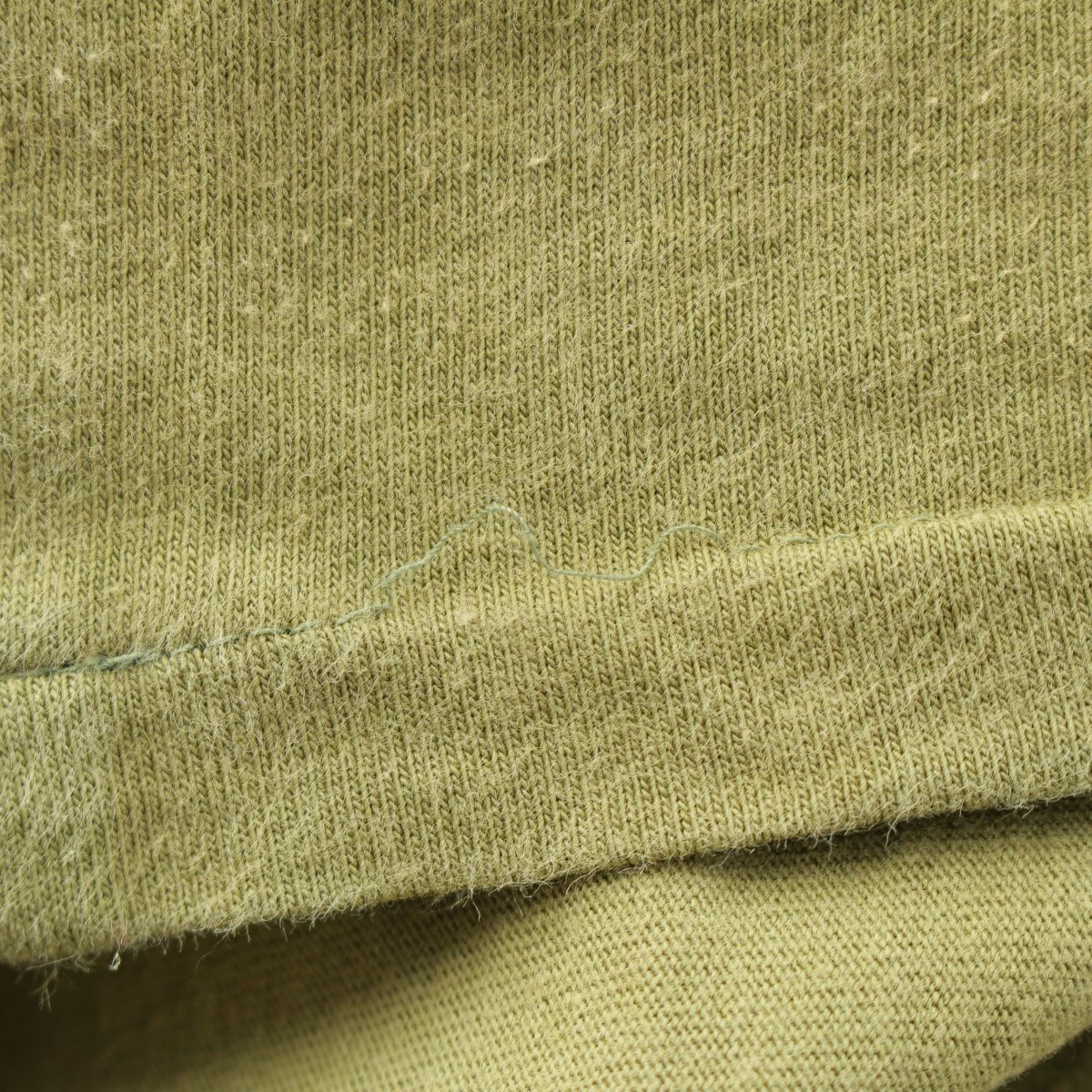 ダメージ箇所: 表面全体に毛羽立ち、脇に毛玉、袖に穴あき、裾に縫製取れ、保管臭のようなニオイ