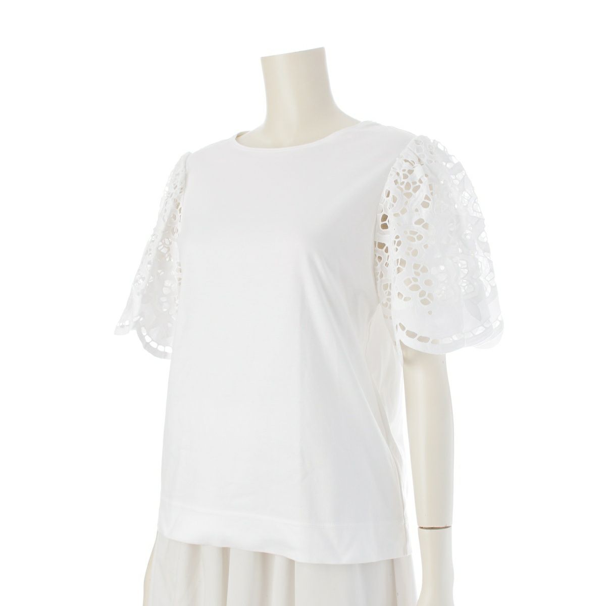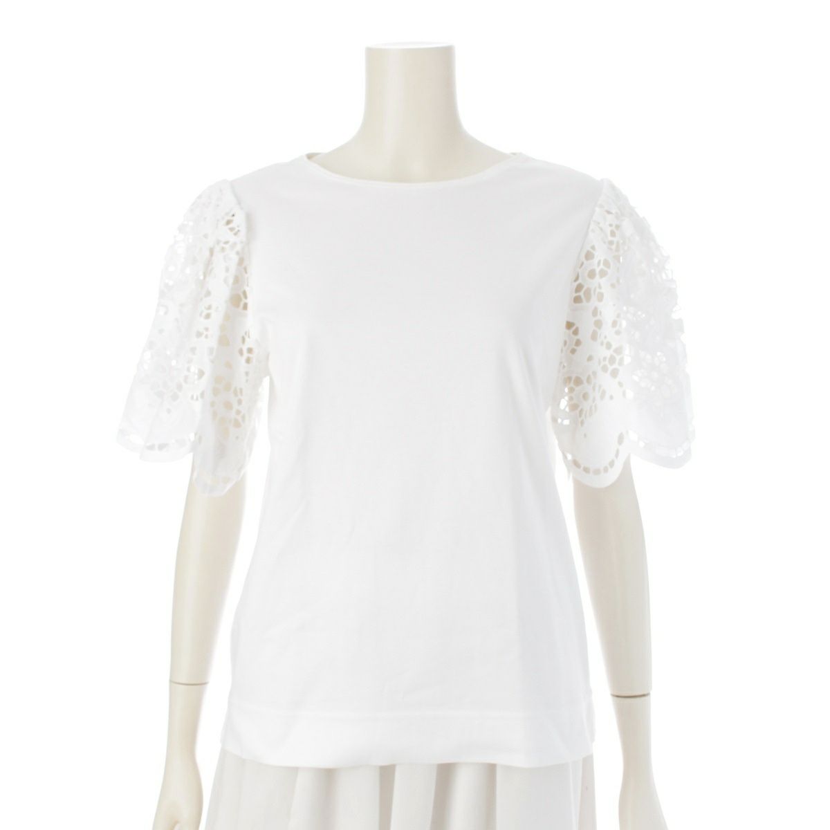 ドゥロワー 22SS コットン レース クルーネック 半袖Tシャツ トップス 6517-206-0642 ホワイト