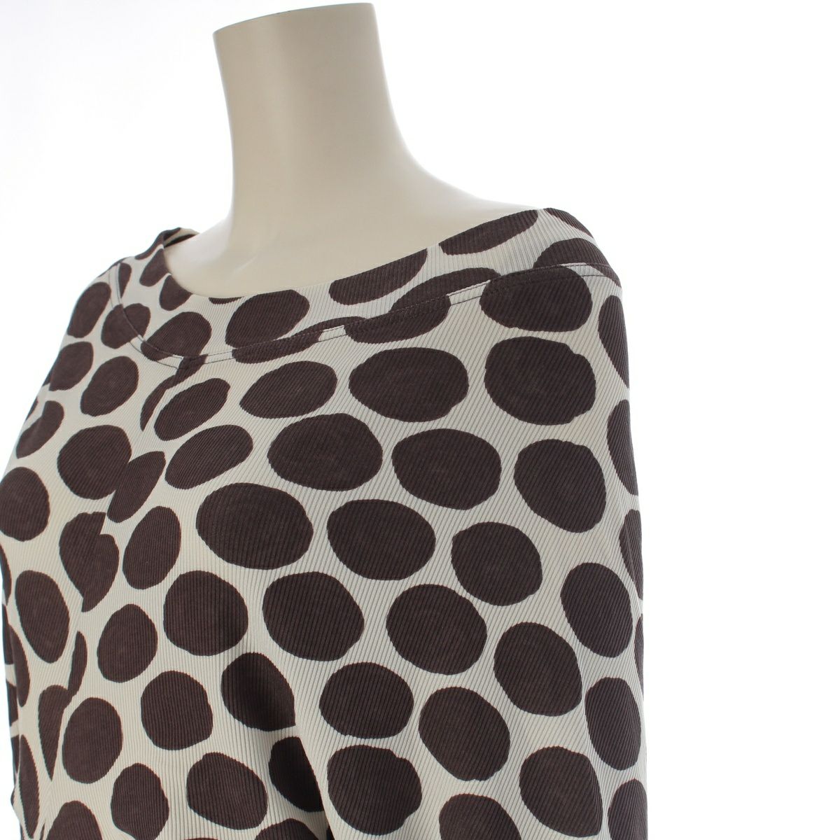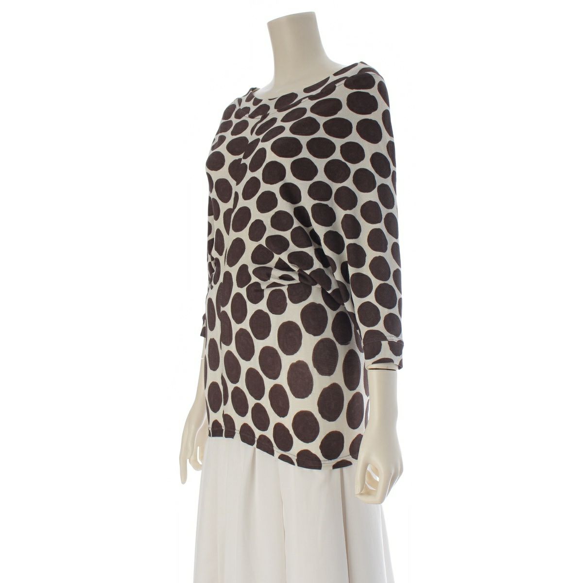 イッセイミヤケ 80s 1989 筆タグ 変形 ドレープ ドット 半袖 カットソー トップス JY11839 ホワイト ブラウン M