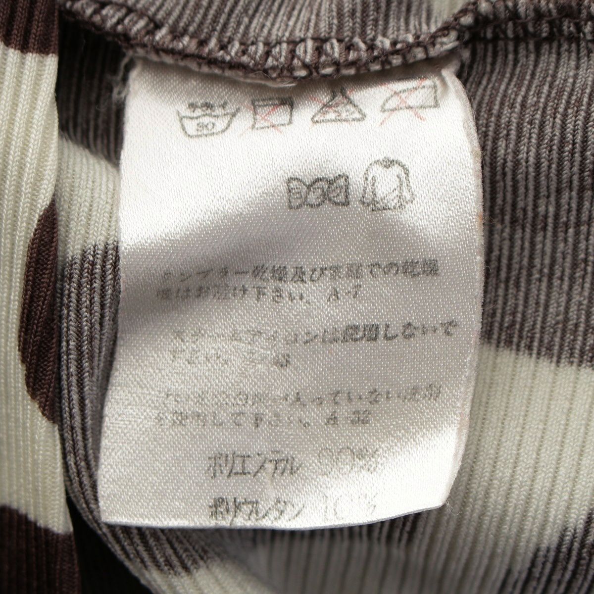 ダメージ箇所: ブラウンモチーフ:スレあり 後身頃左下部:穴あきあり、保管臭のようなニオイ