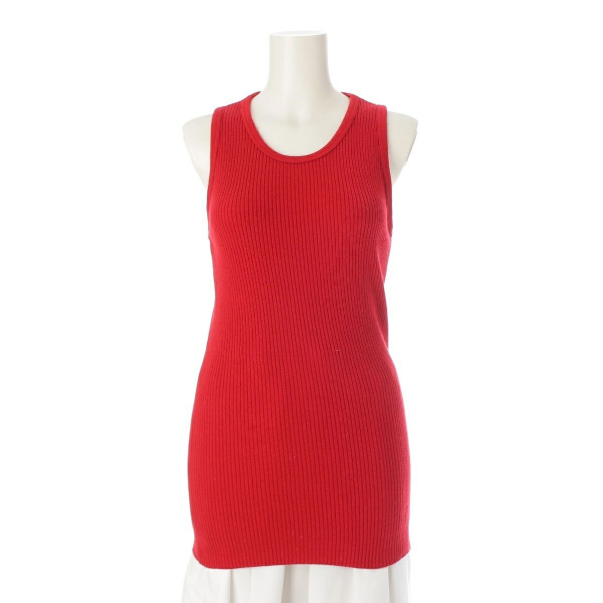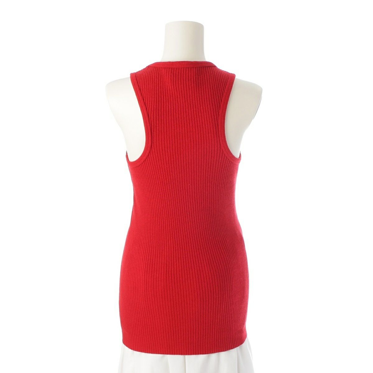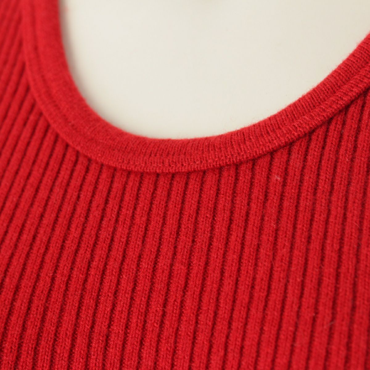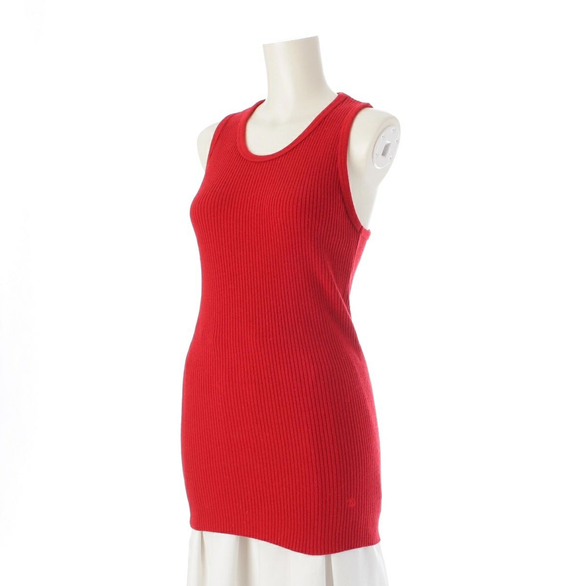 シャネル カシミヤ ココマーク 刺繍 リブニット タンクトップ トップス レッド 40