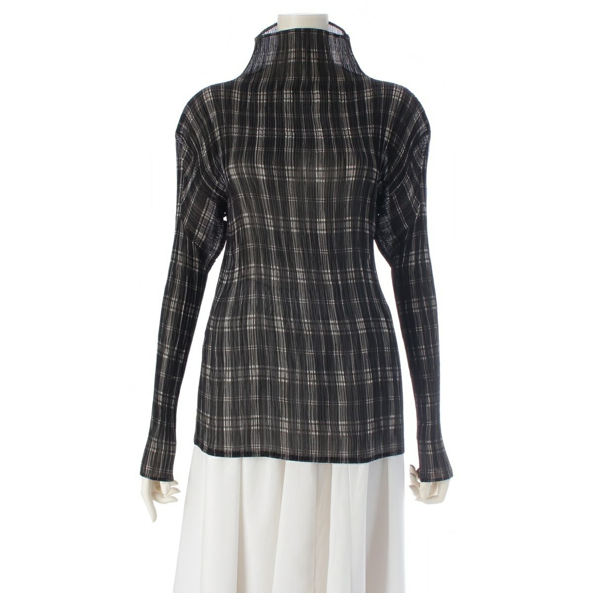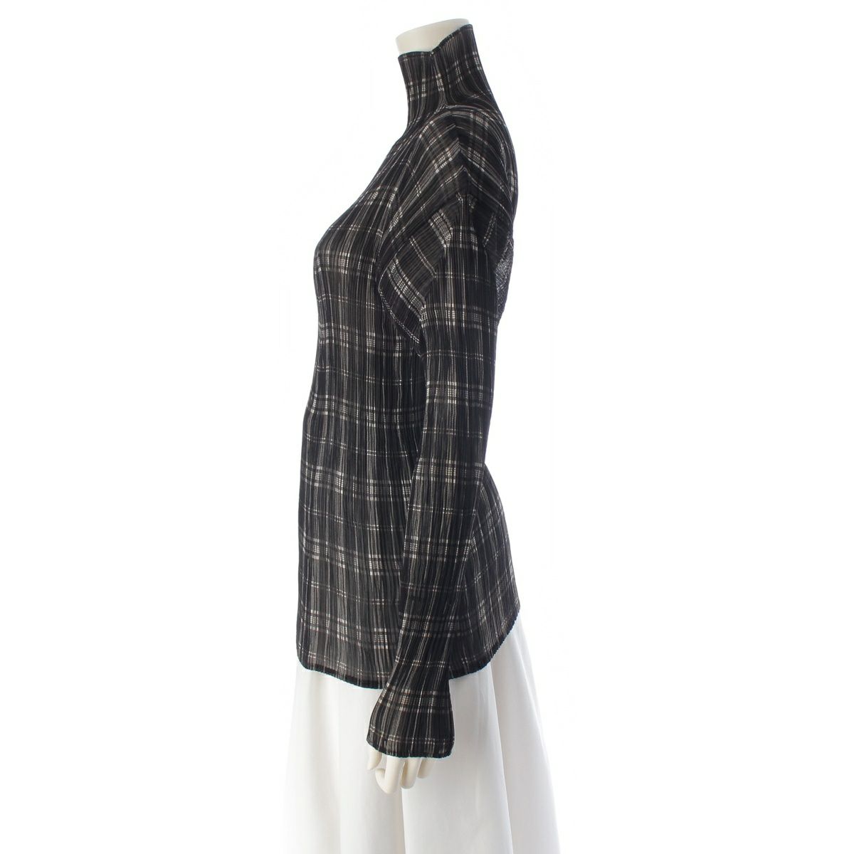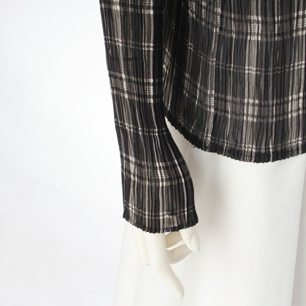 イッセイミヤケ 96年 チェック プリーツ 長袖 トップス IM61-FJ919 ブラック L