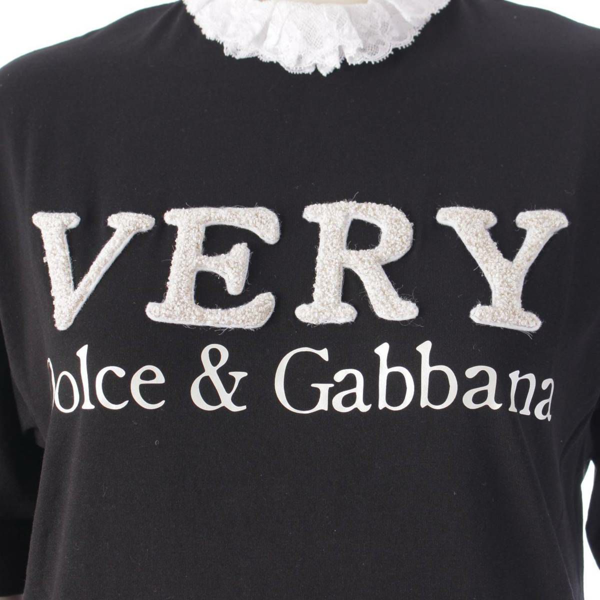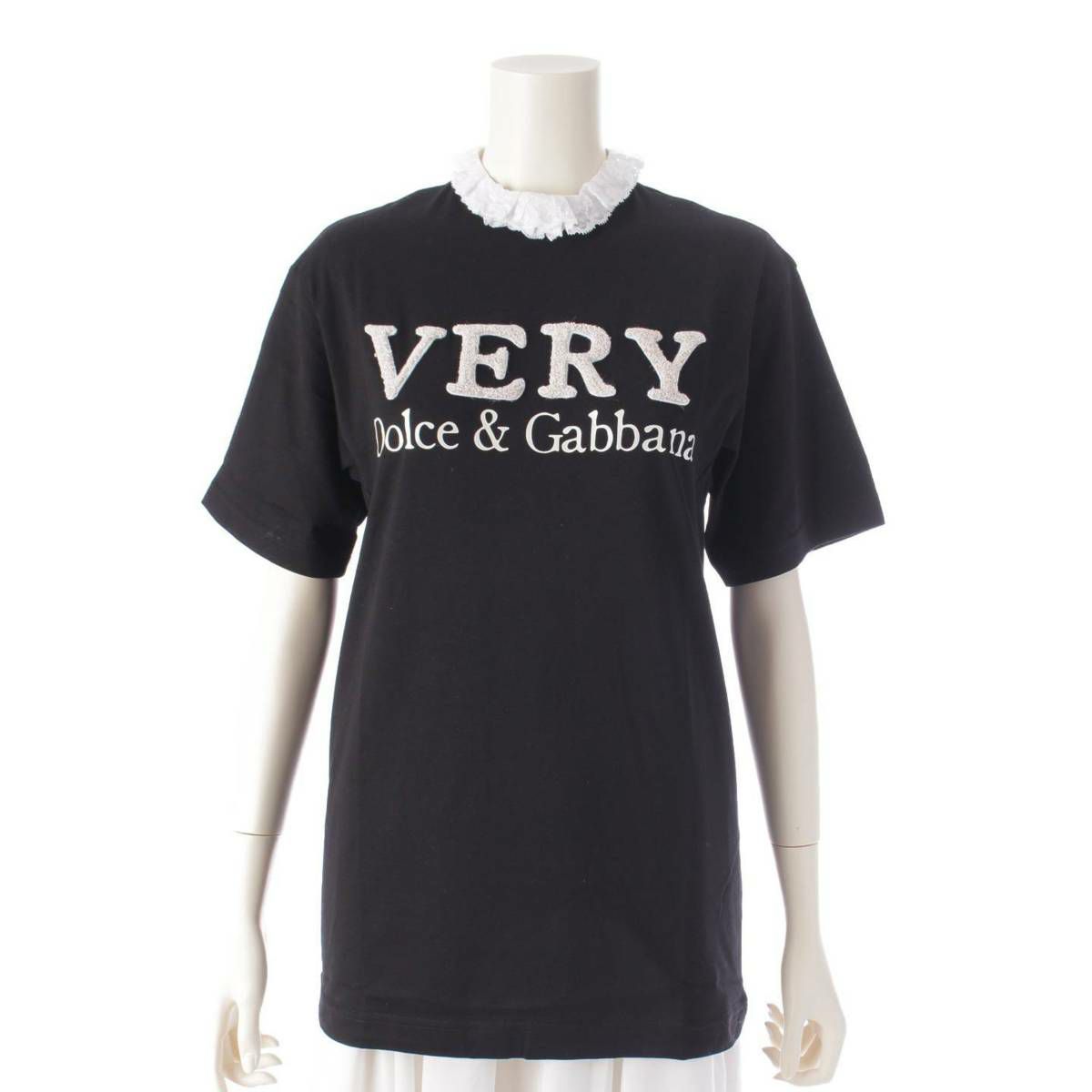 ドルチェアンドガッバーナ VERY レース パッチ エンブロイダリー 半袖Tシャツ トップス カットソー F8M70ZG7XLR ブラック 38