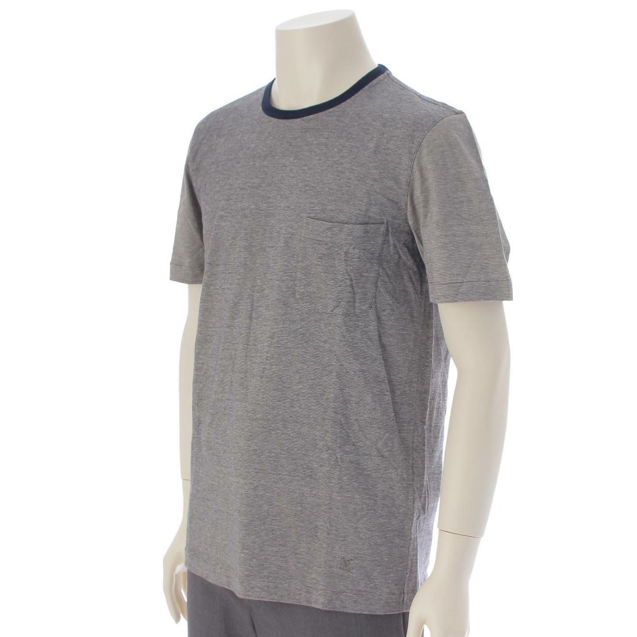 ルイヴィトン メンズ Tシャツ 胸ポケット付き LVロゴ 刺しゅう カットソー トップス グレー