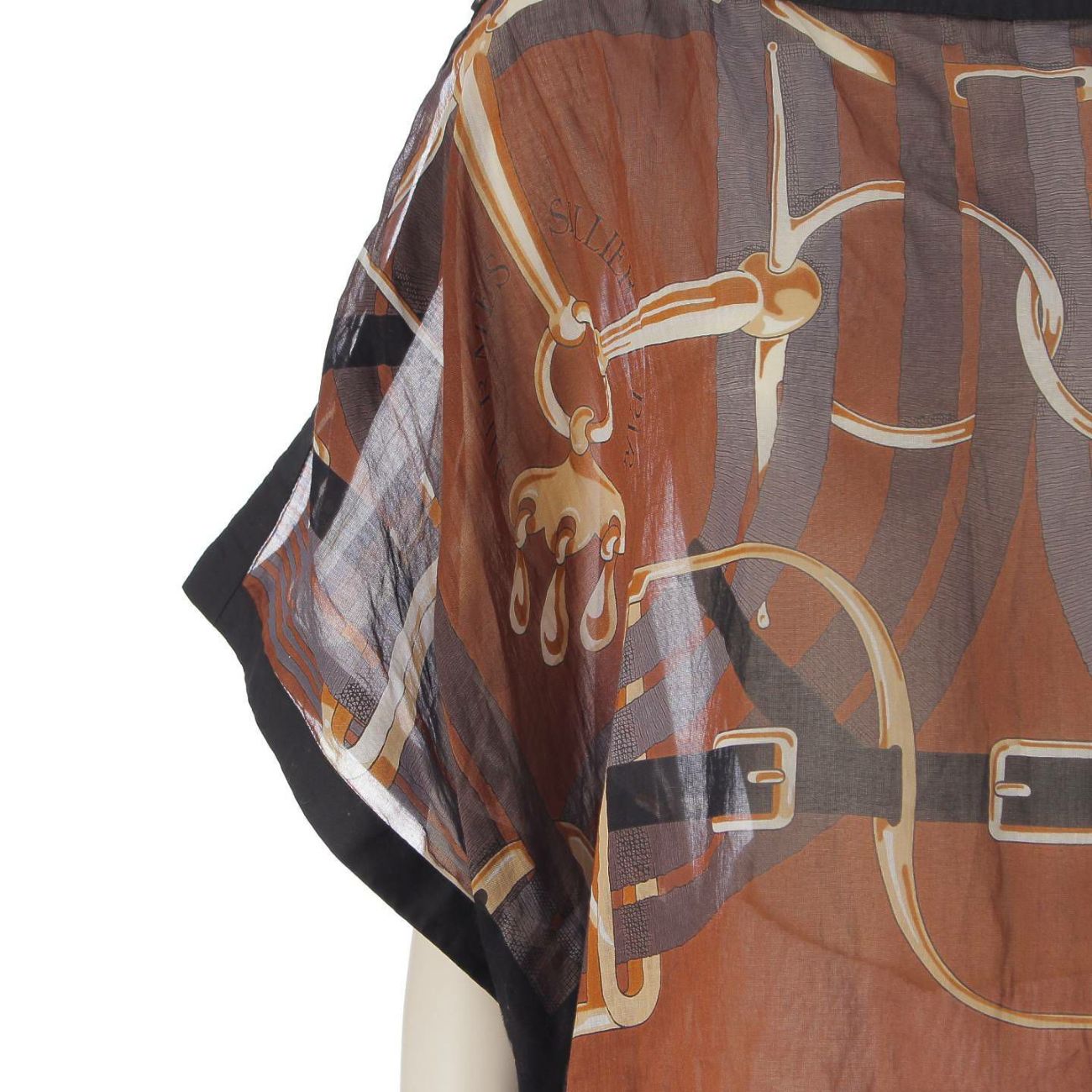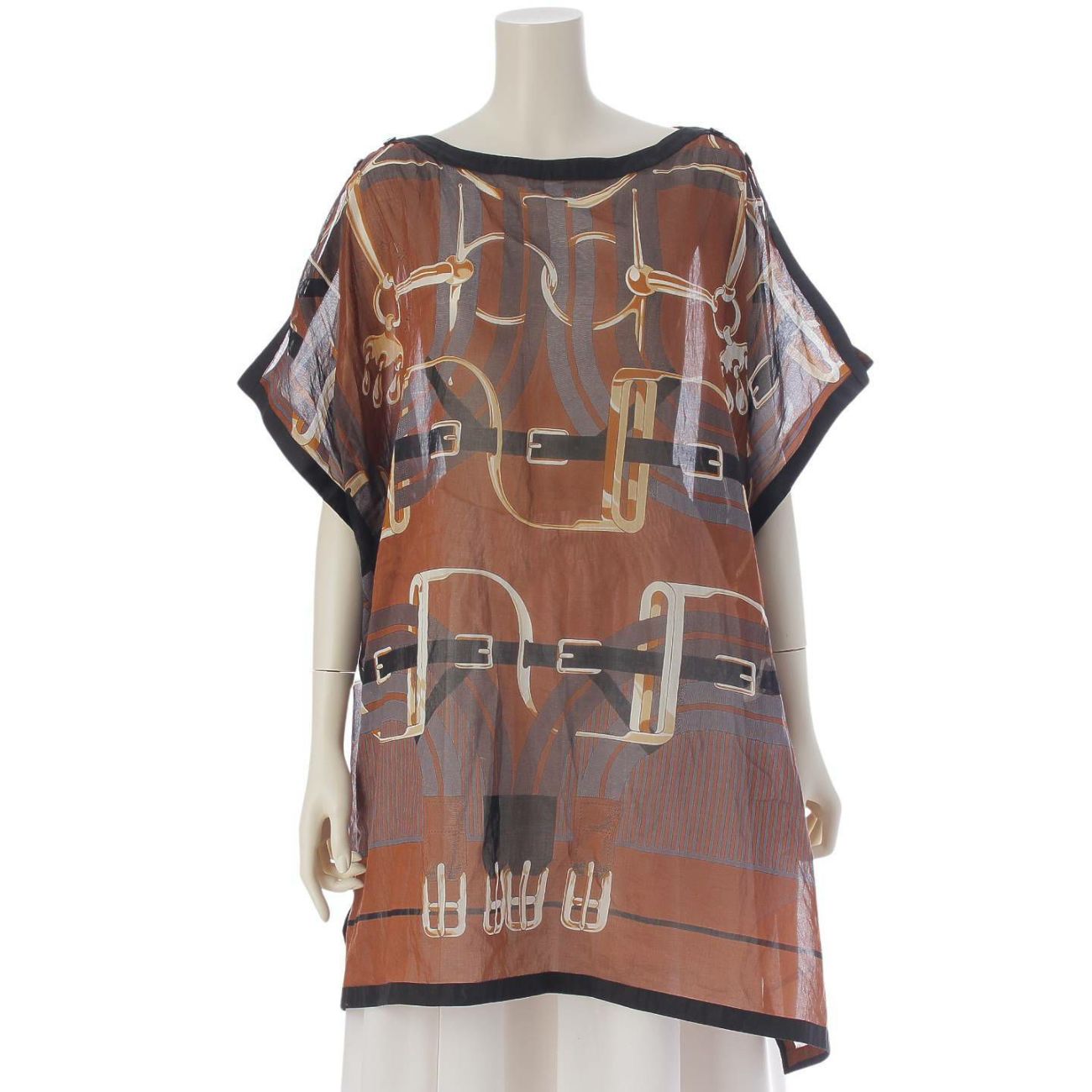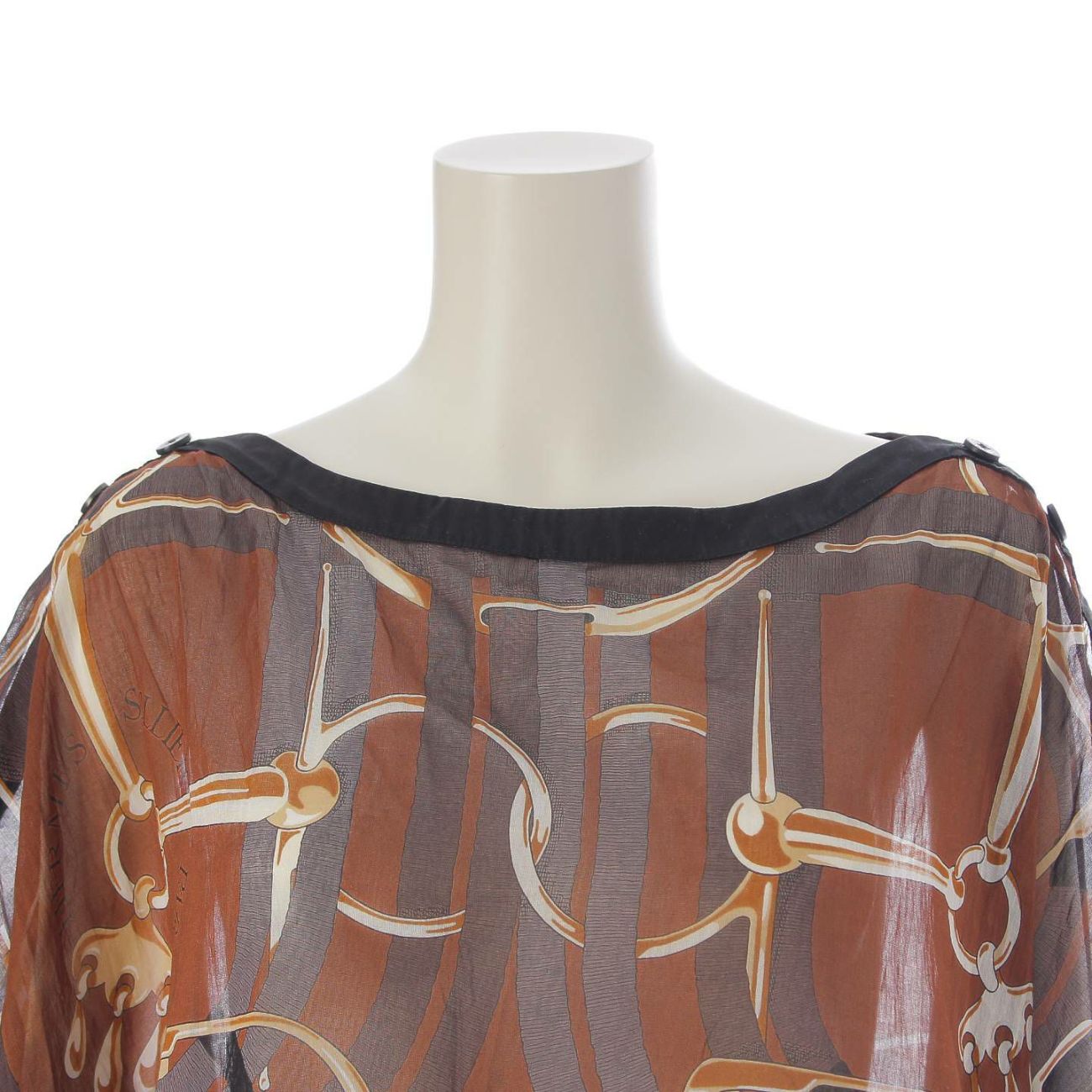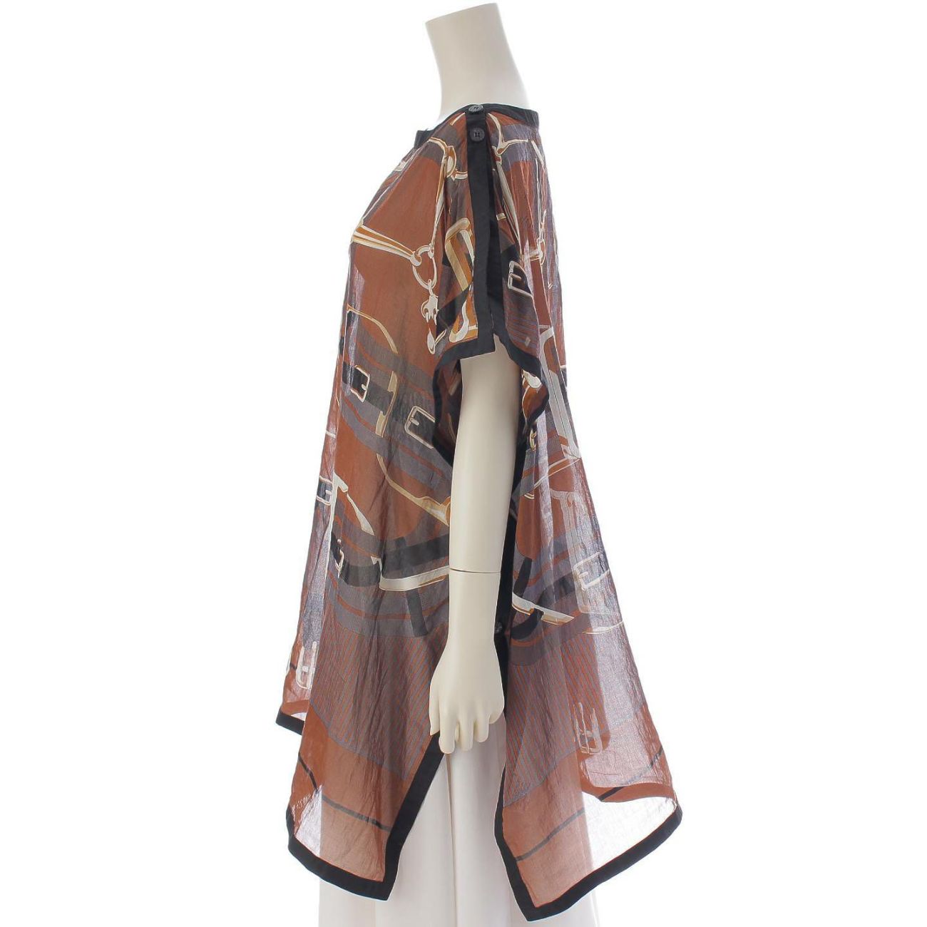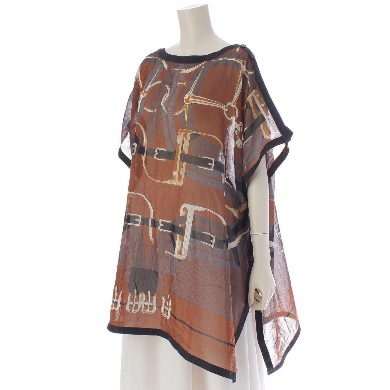 エルメス ゴルチエ期 コットン シースルー ポンチョ 半袖 カットソー ブラウン TU