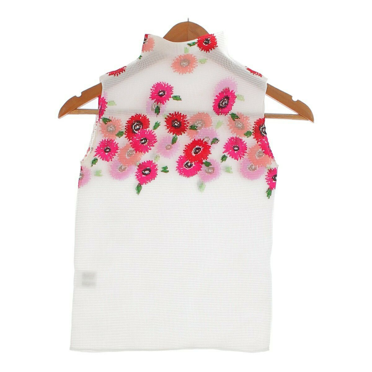 ミー イッセイミヤケ 花柄 プリーツ ハイネック ノースリーブ カットソー トップス MI61FR427 ホワイト【中古】【正規品保証】