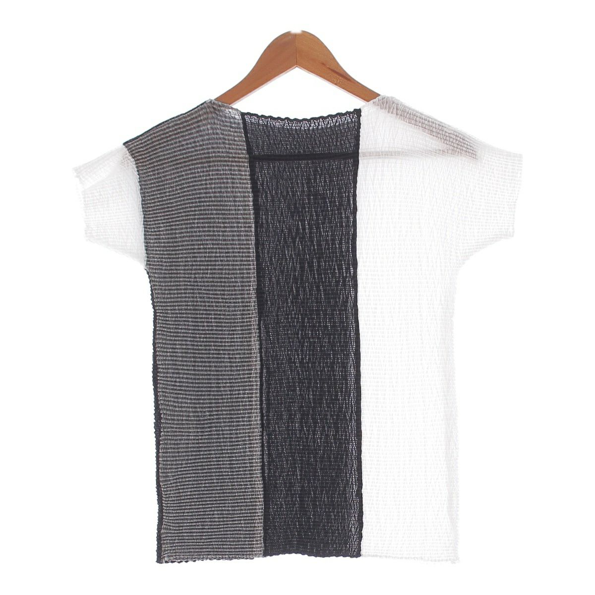 イッセイミヤケ プリーツ カラーブロッキング 半袖 カットソー トップス ブラウス IM21FJ143 ホワイト ブラック ダークグレー 2