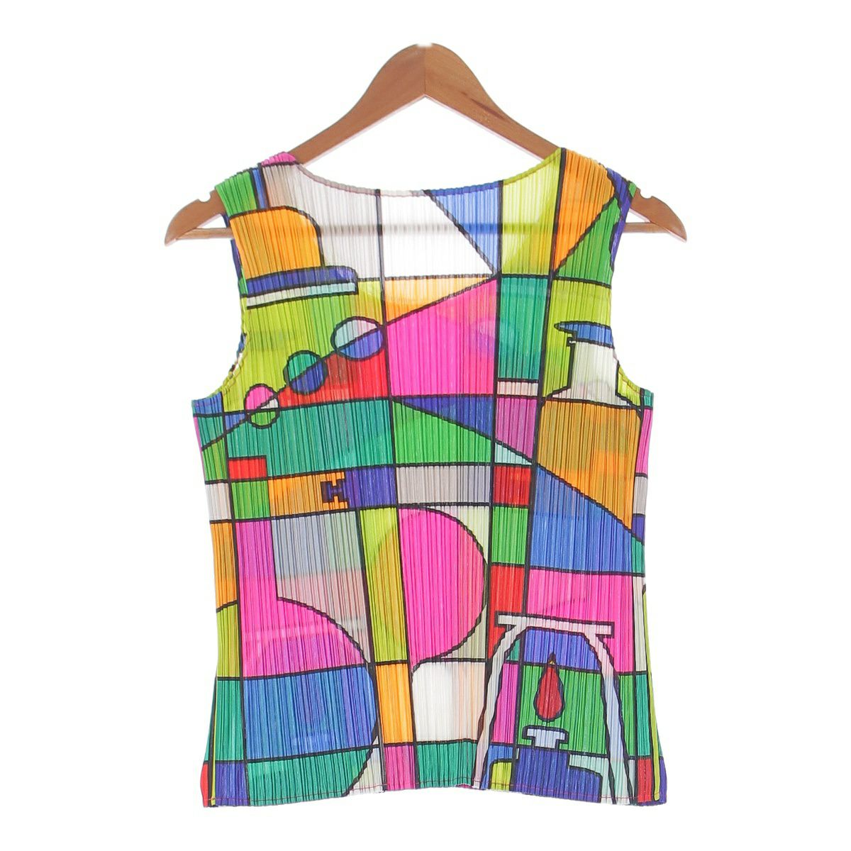 プリーツプリーズ イッセイミヤケ 08年 ノースリーブ 幾何学 総柄 タンクトップ トップス PP81‐JK631 マルチカラー 3