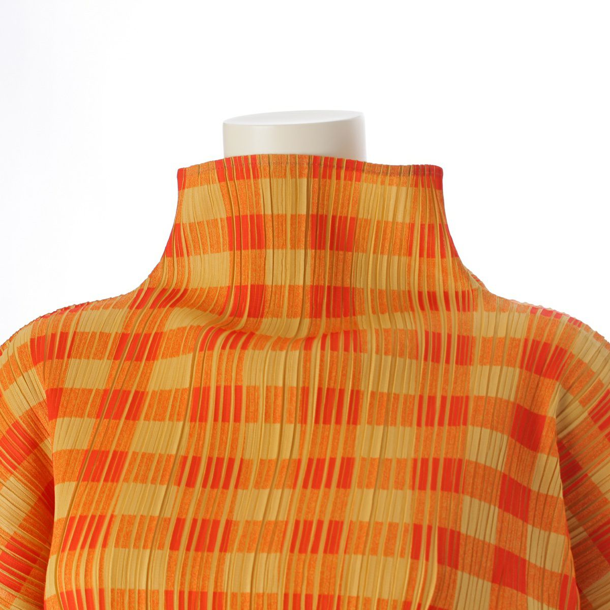 プリーツプリーズ イッセイミヤケ 転写プリント チェック 長袖タートルネック 長袖Tシャツ PP54-JK604 オレンジ 4
