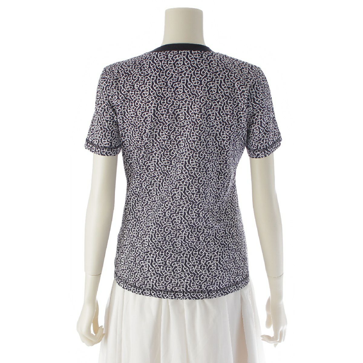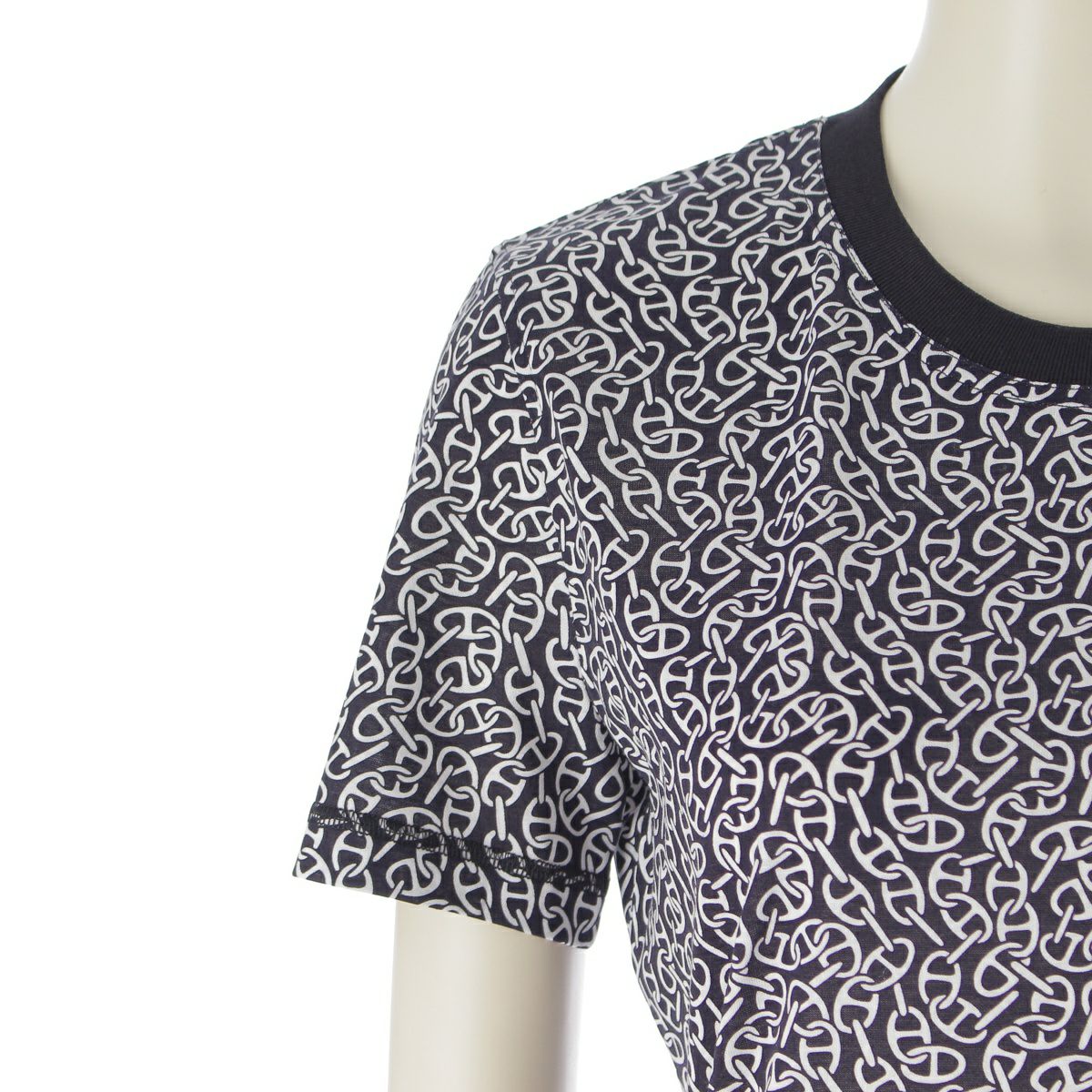 エルメス 24SS コットン ナウサ シェーヌダンクル 総柄 半袖Tシャツ カットソー トップス ブラック 36