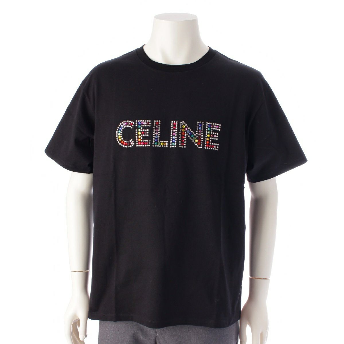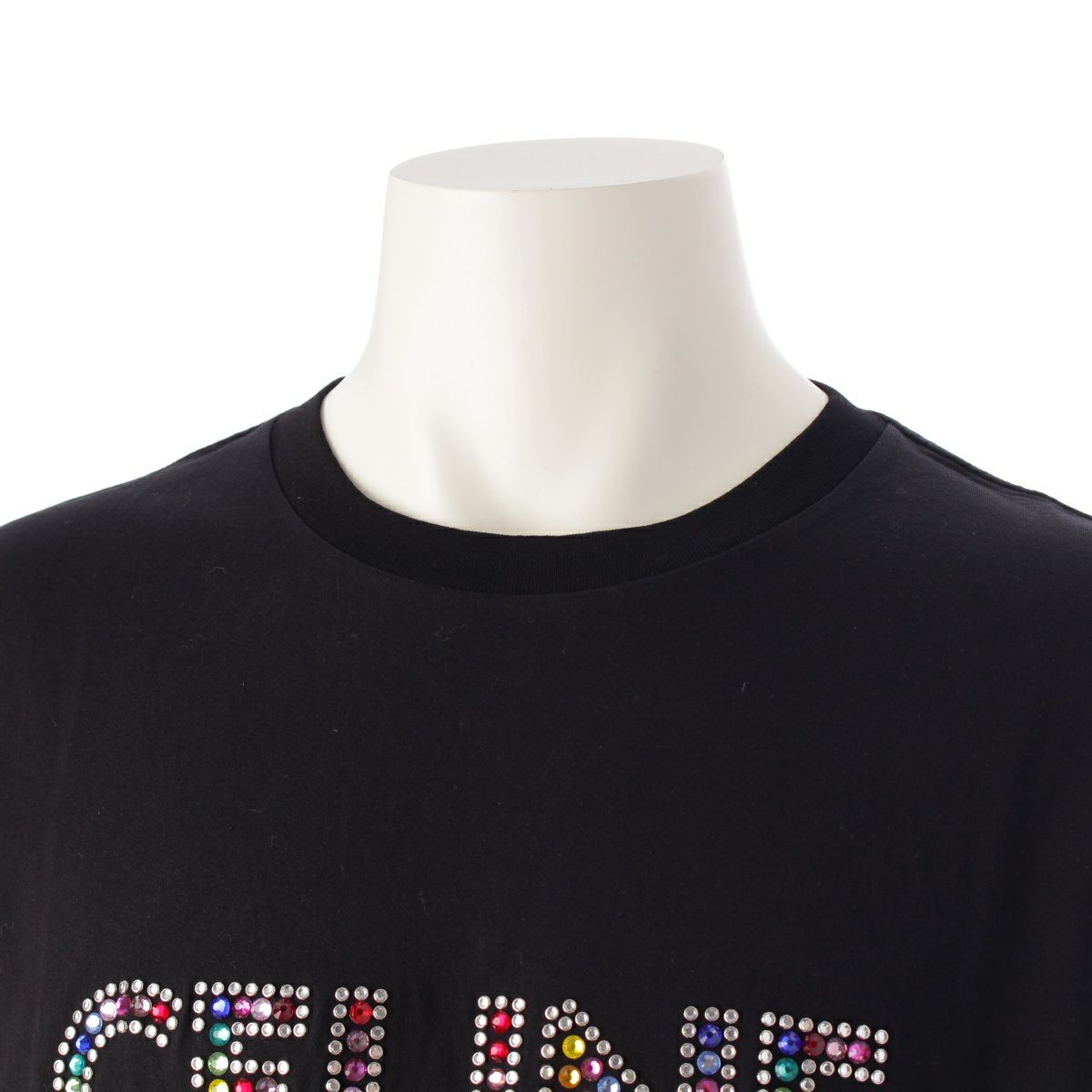 セリーヌ コットン ロゴ ラインストーン 半袖Tシャツ トップス カットソー 2X48F671Q ブラック L