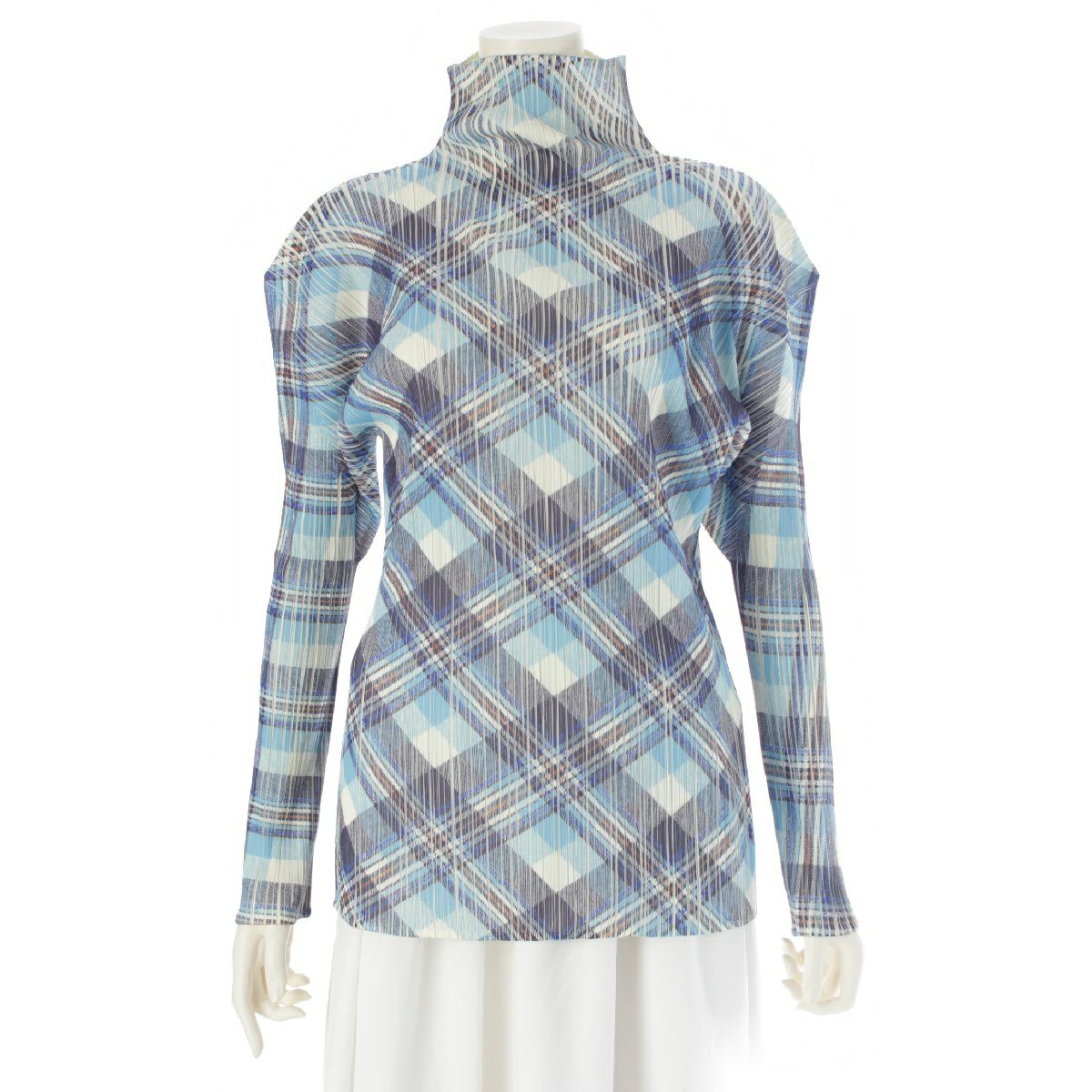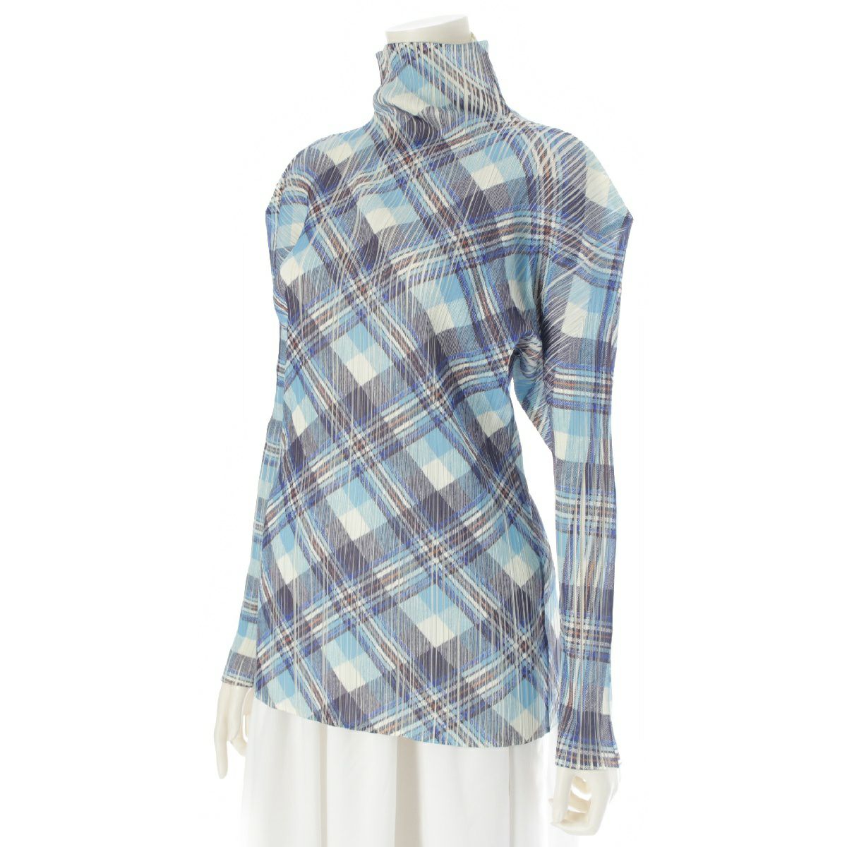 プリーツプリーズ イッセイミヤケ チェック柄 長袖 ボトルネック トップス カットソー ブラウス PP52-JK604 マルチカラー 3
