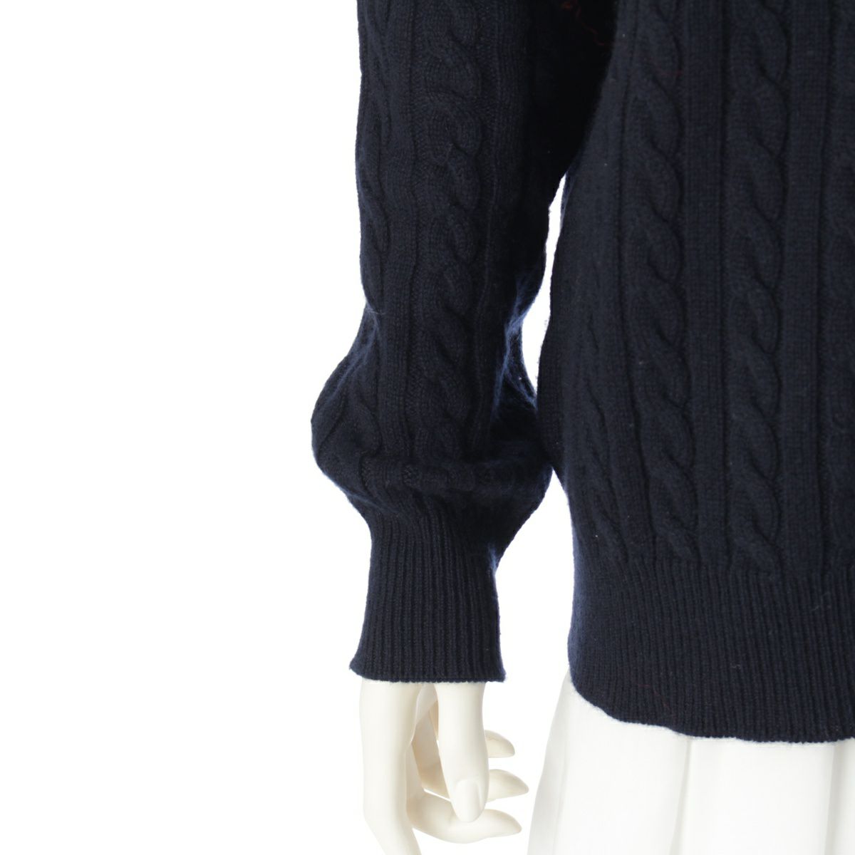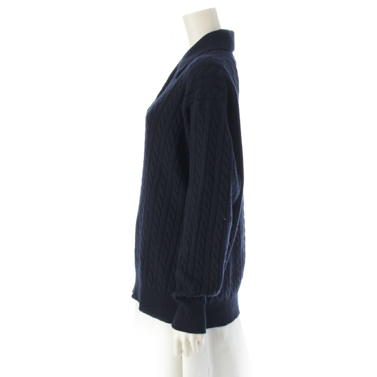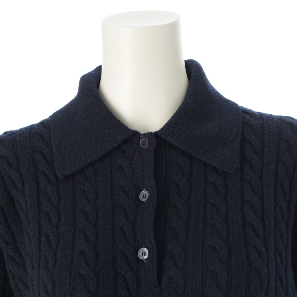 ミュウミュウ 24年 カシミヤ バックロゴ ケーブルニット 長袖 ポロシャツ トップス セーター MML977 ネイビー 38