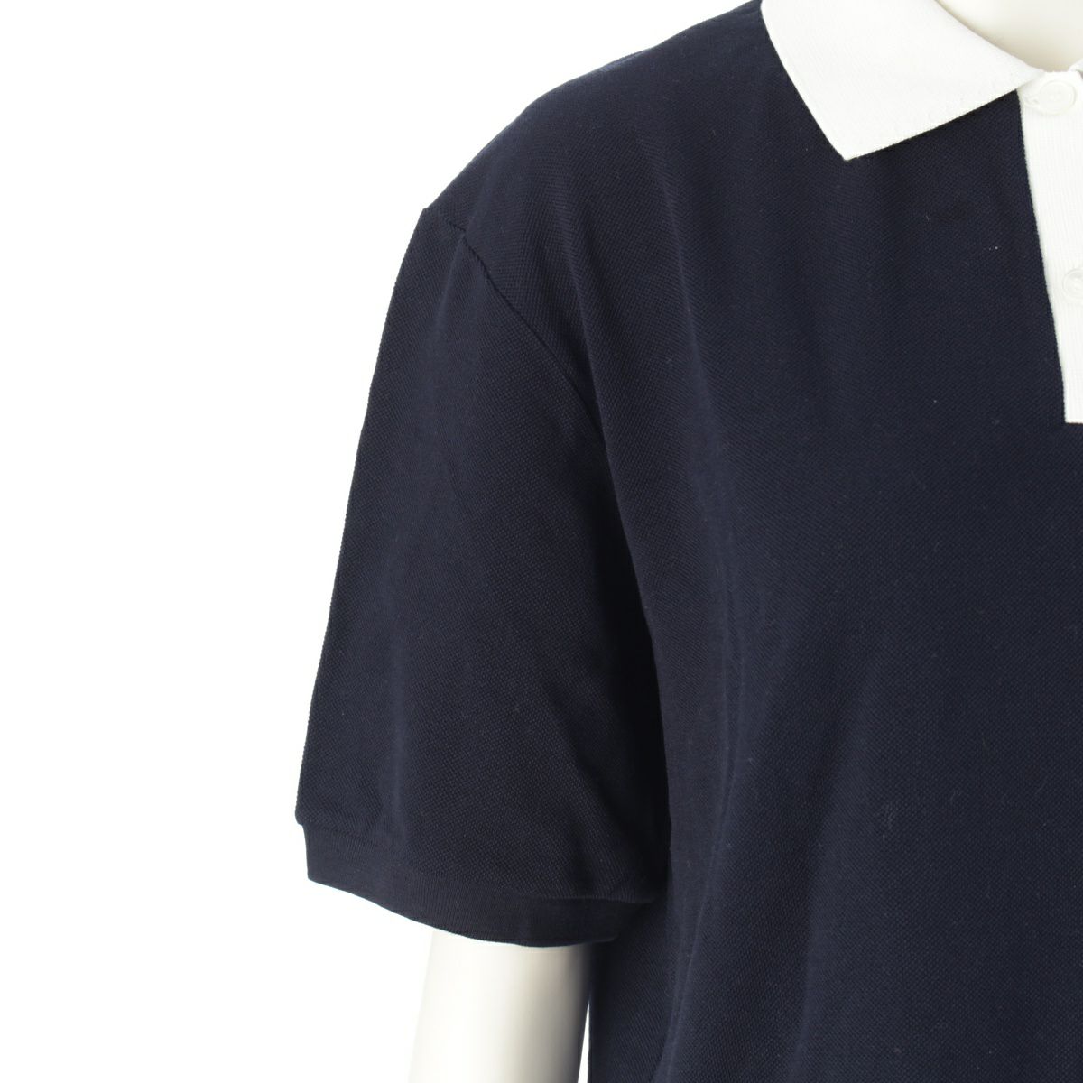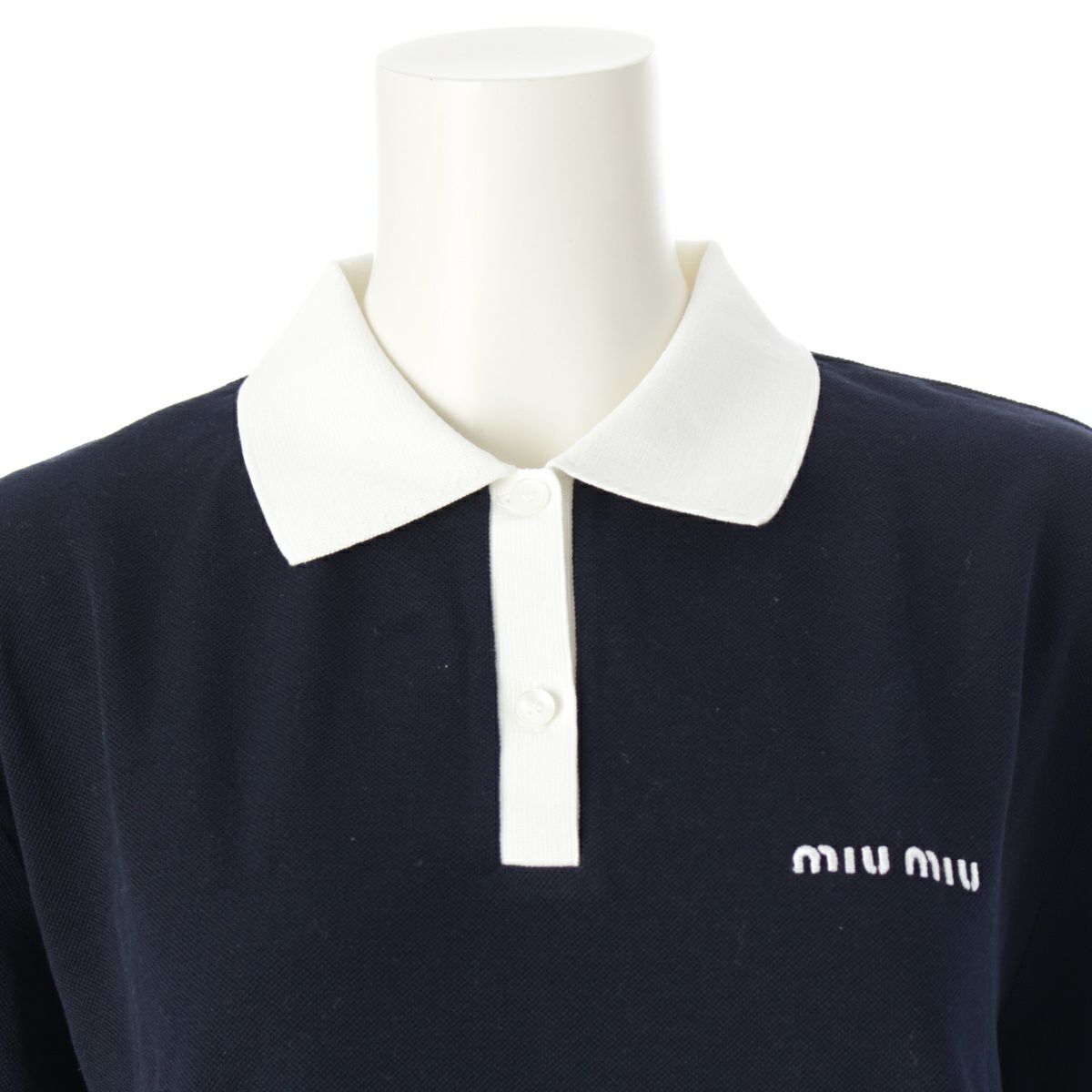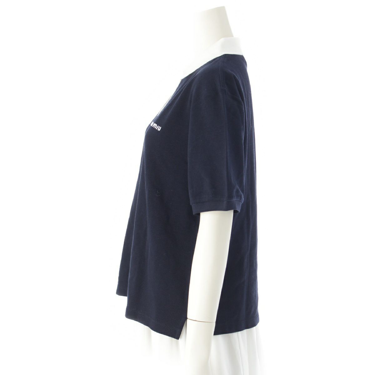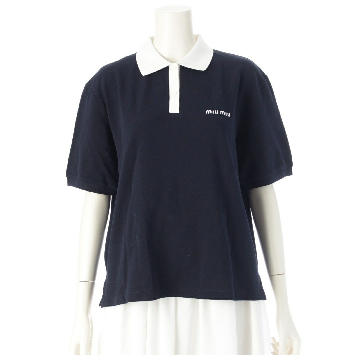 ミュウミュウ 24AW コットンピケ ポロシャツ ロゴ刺繍 半袖 トップス MJN559 ネイビー S