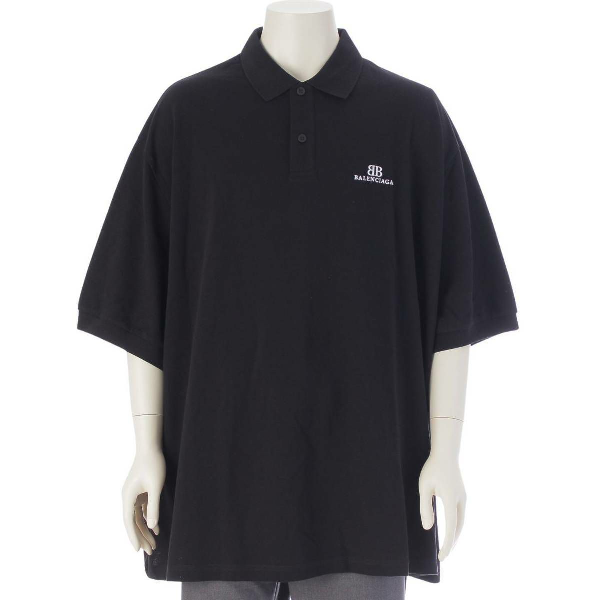バレンシアガ 24SS メンズ 刺繍 BBロゴ Classic オーバーサイズ 半袖 ポロシャツ 791001 ブラック 3