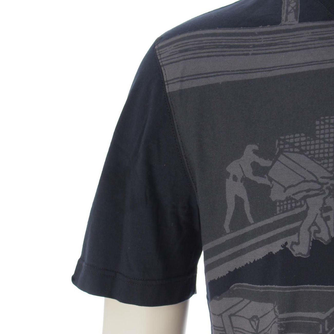 ルイヴィトン メンズ プリント クルーネック コットン Tシャツ トランク ネイビー S