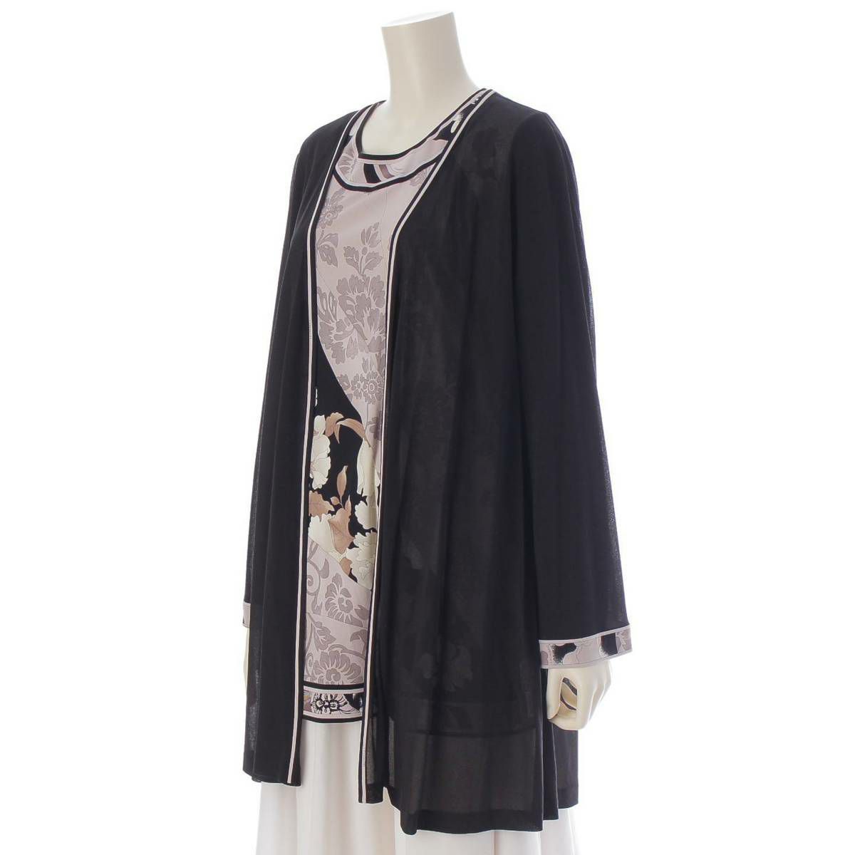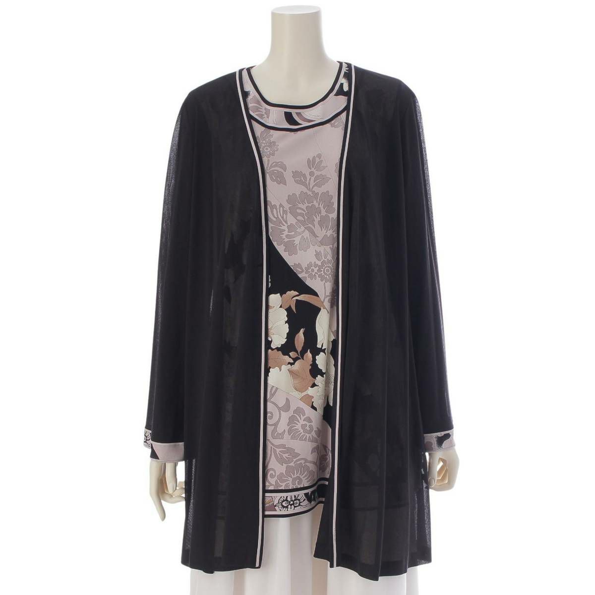 レオナール LEONARD カンカン 花柄 アンサンブル トップス カーディガン 2点セット ブラック 42