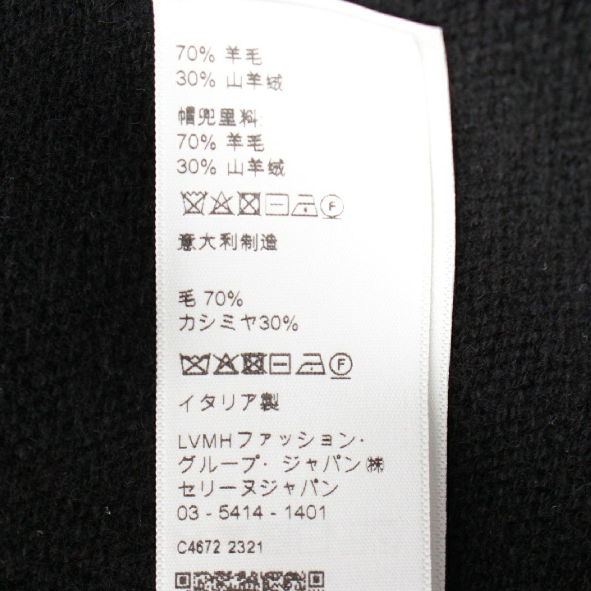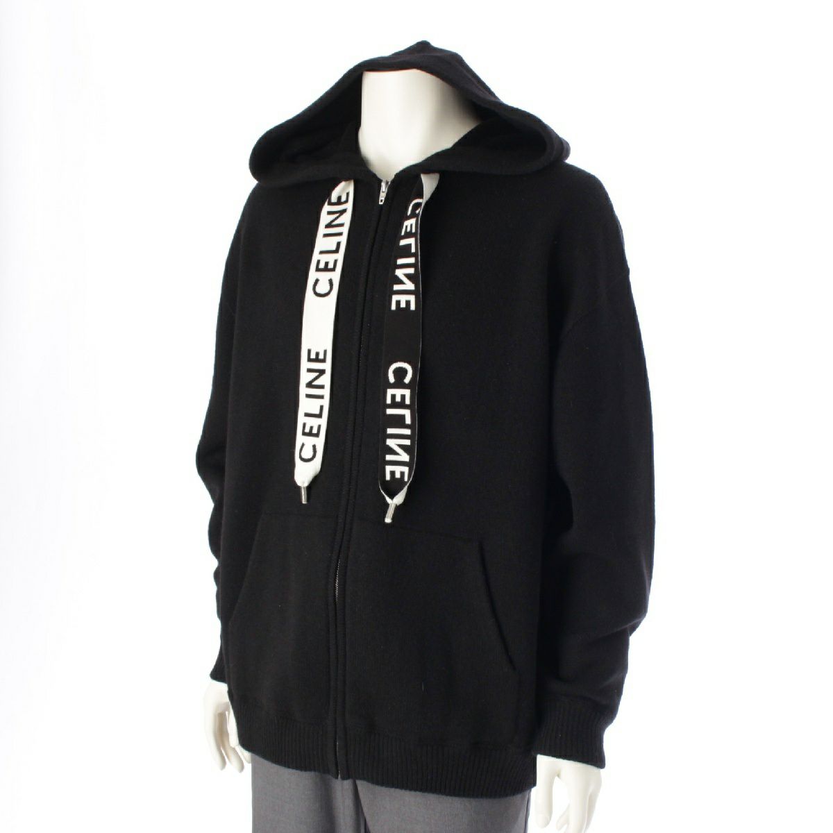 セリーヌ エディ期 ウール×カシミヤ ロゴテープ ドローコード フーデッド ジップアップ パーカー ジャケット ブルゾン 2A77O402P ブラック XS