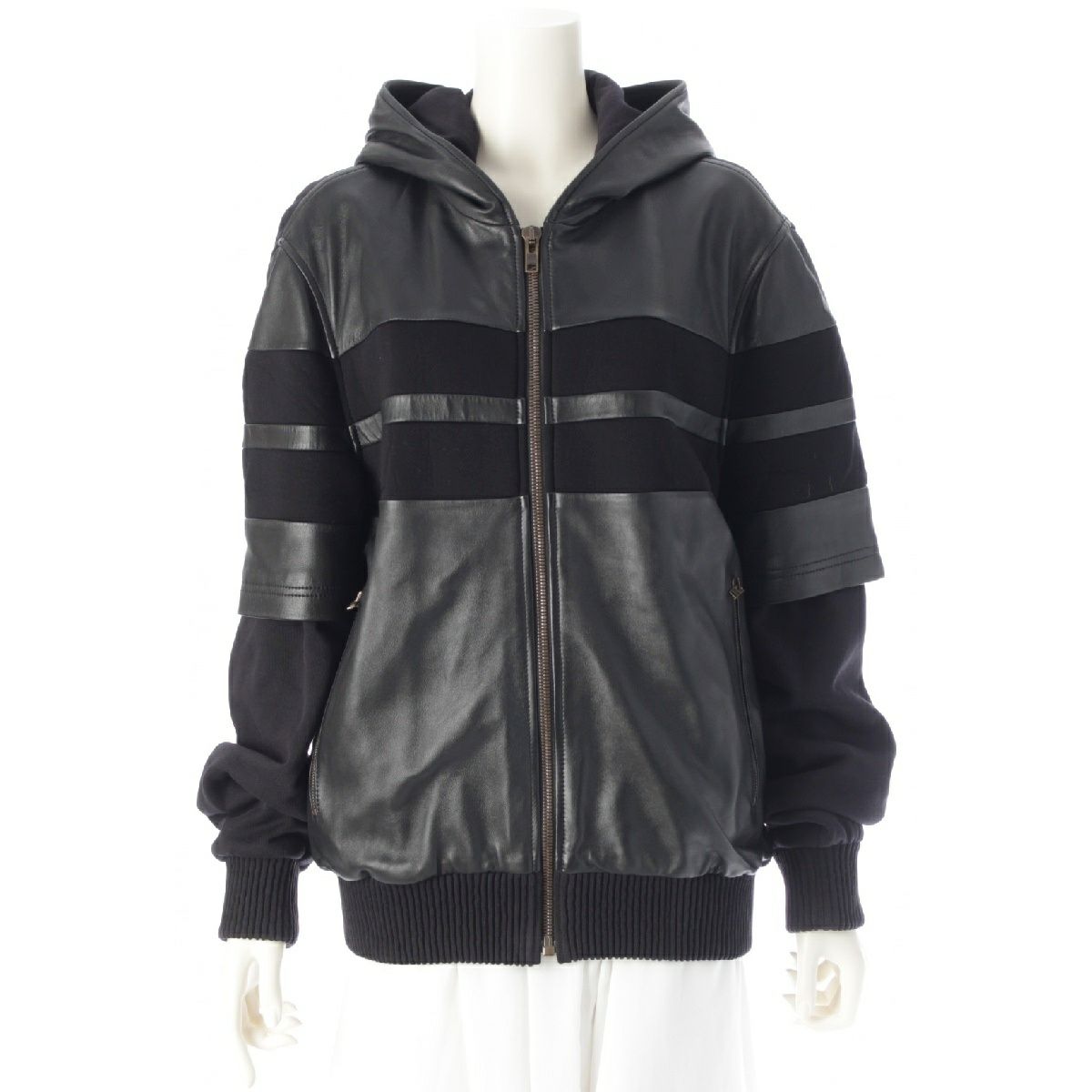 ジバンシィ ラムスキン フェイクレイヤード ジップアップ フード パーカー ジャケット ブルゾン トップス 13F 0304 440 ブラック 48