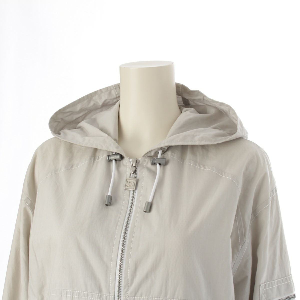 シャネル 04P コットン ココマーク ジップアップ テクニカル パーカー アウター グレー 38