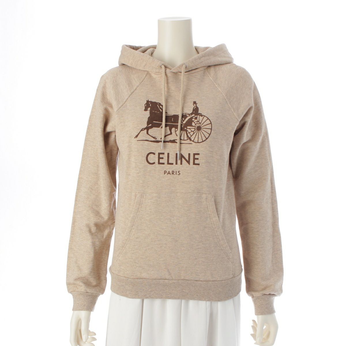 セリーヌ 21AW カシミヤ×コットン ロゴ プリント 馬車 パーカー フーディー トップス 2Y428450I ベージュ XS