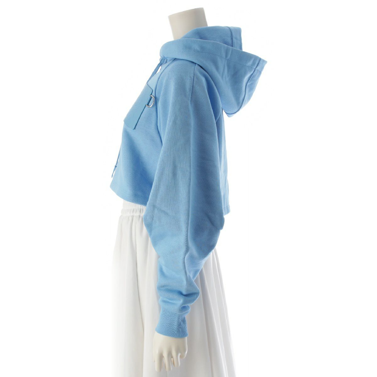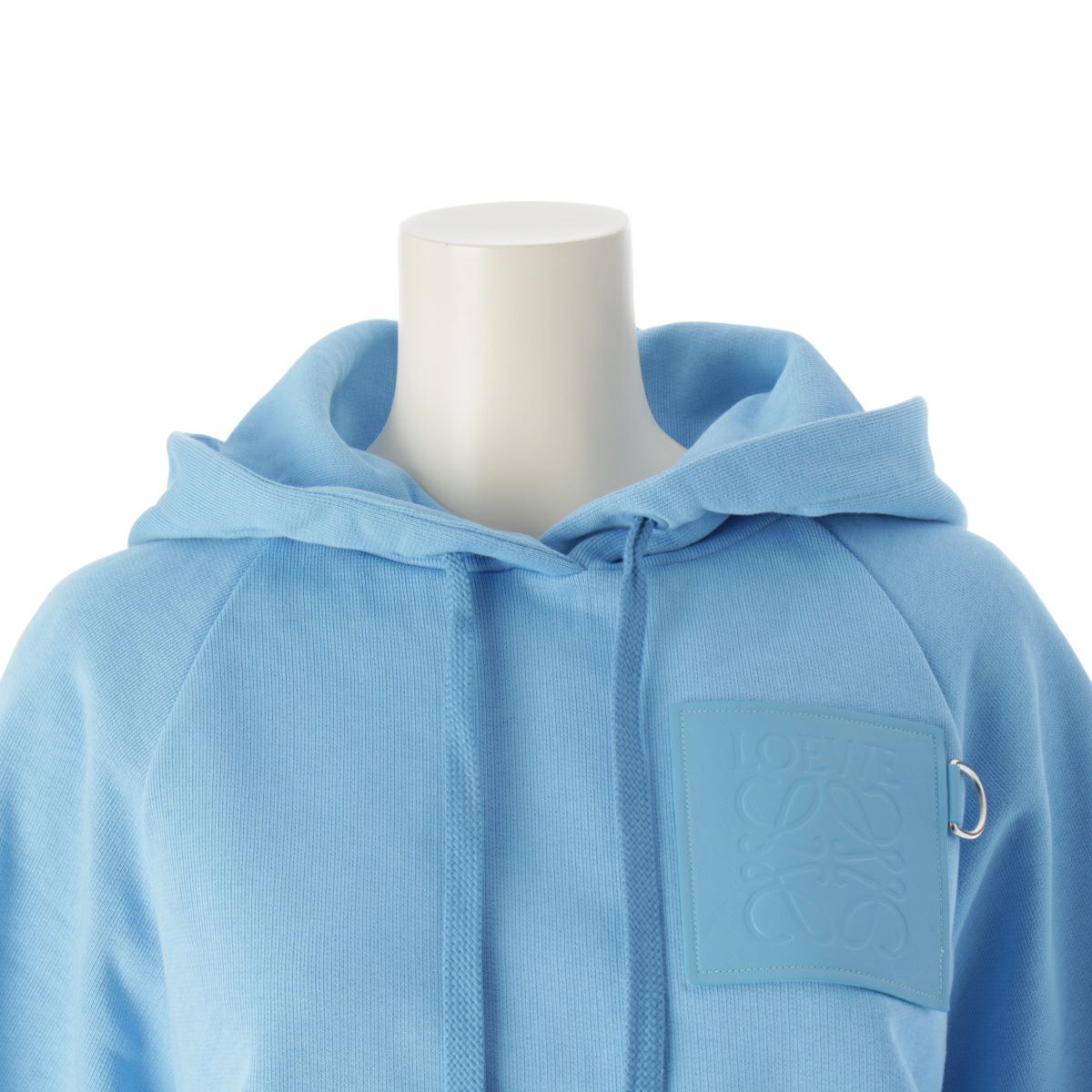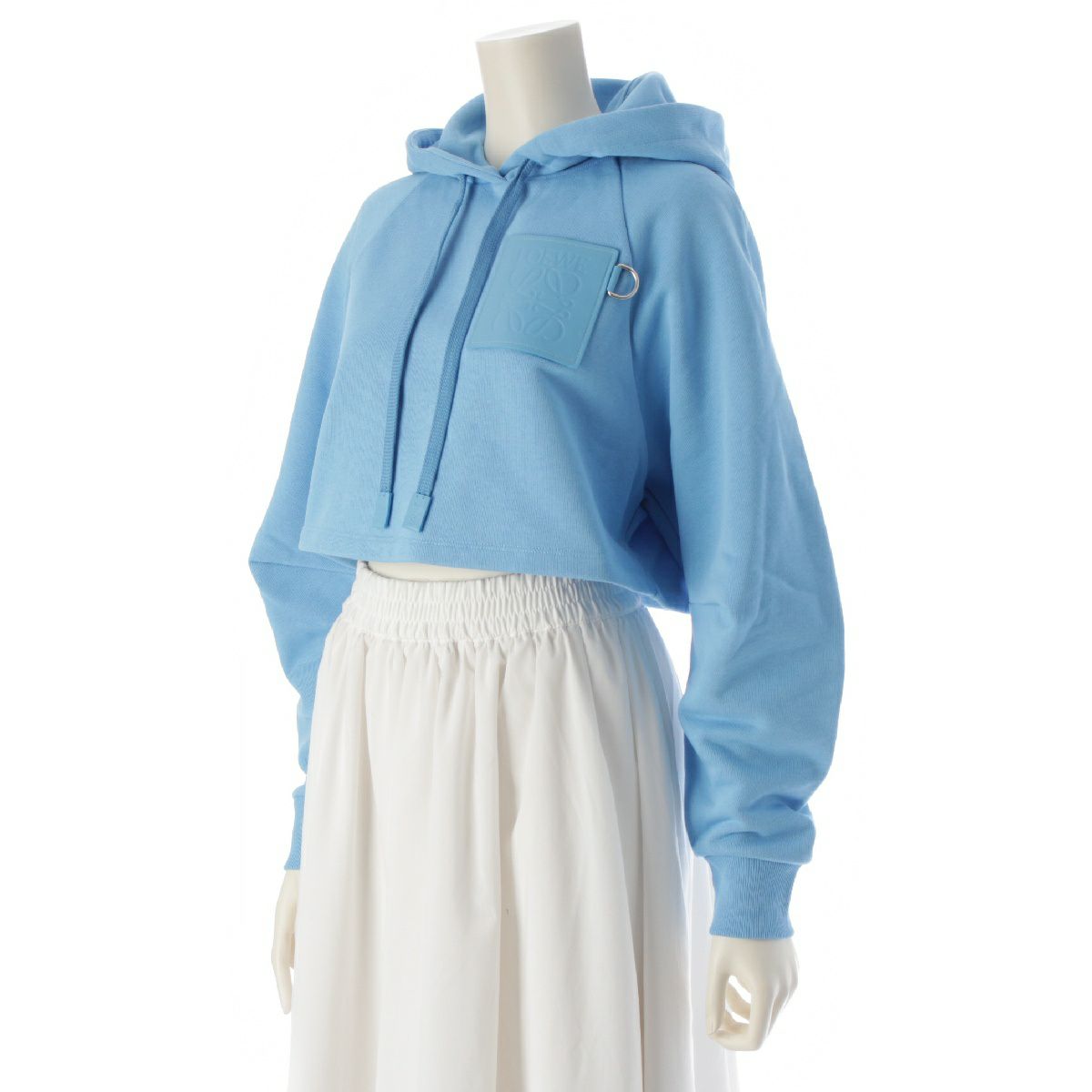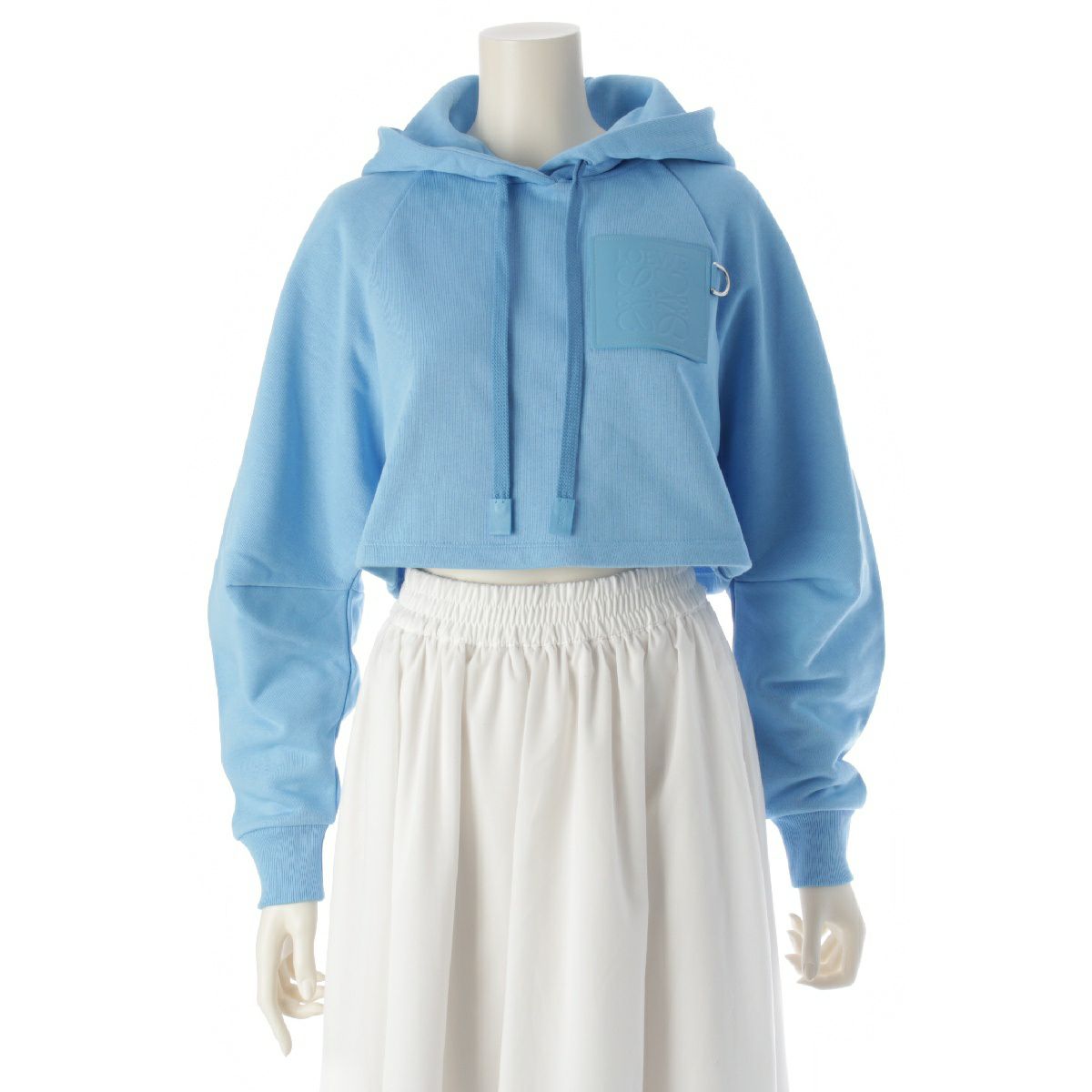 ロエベ コットン アナグラム レザーパッチ クロップド フード パーカー トップス トレーナー S359Y25X26 ブルー XS