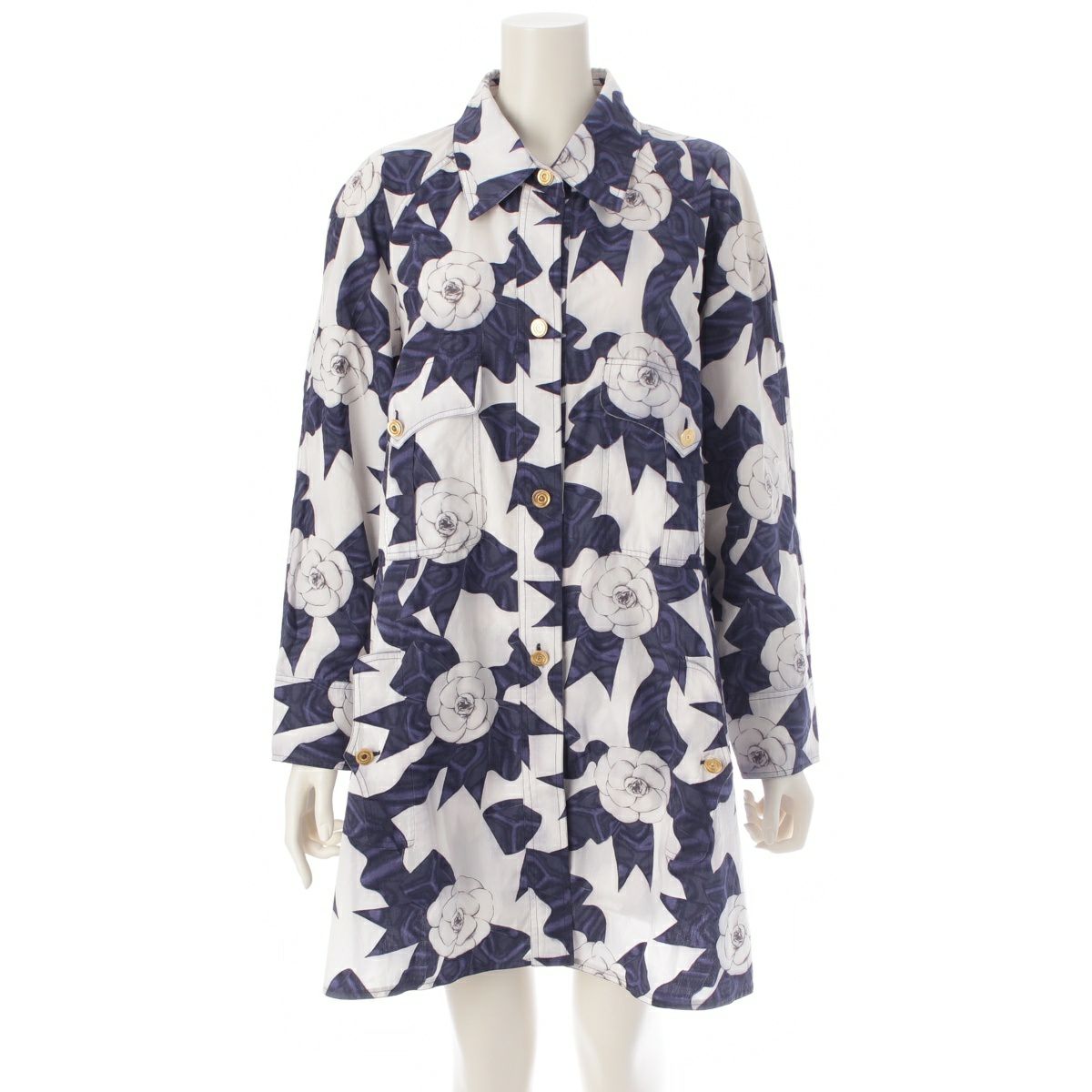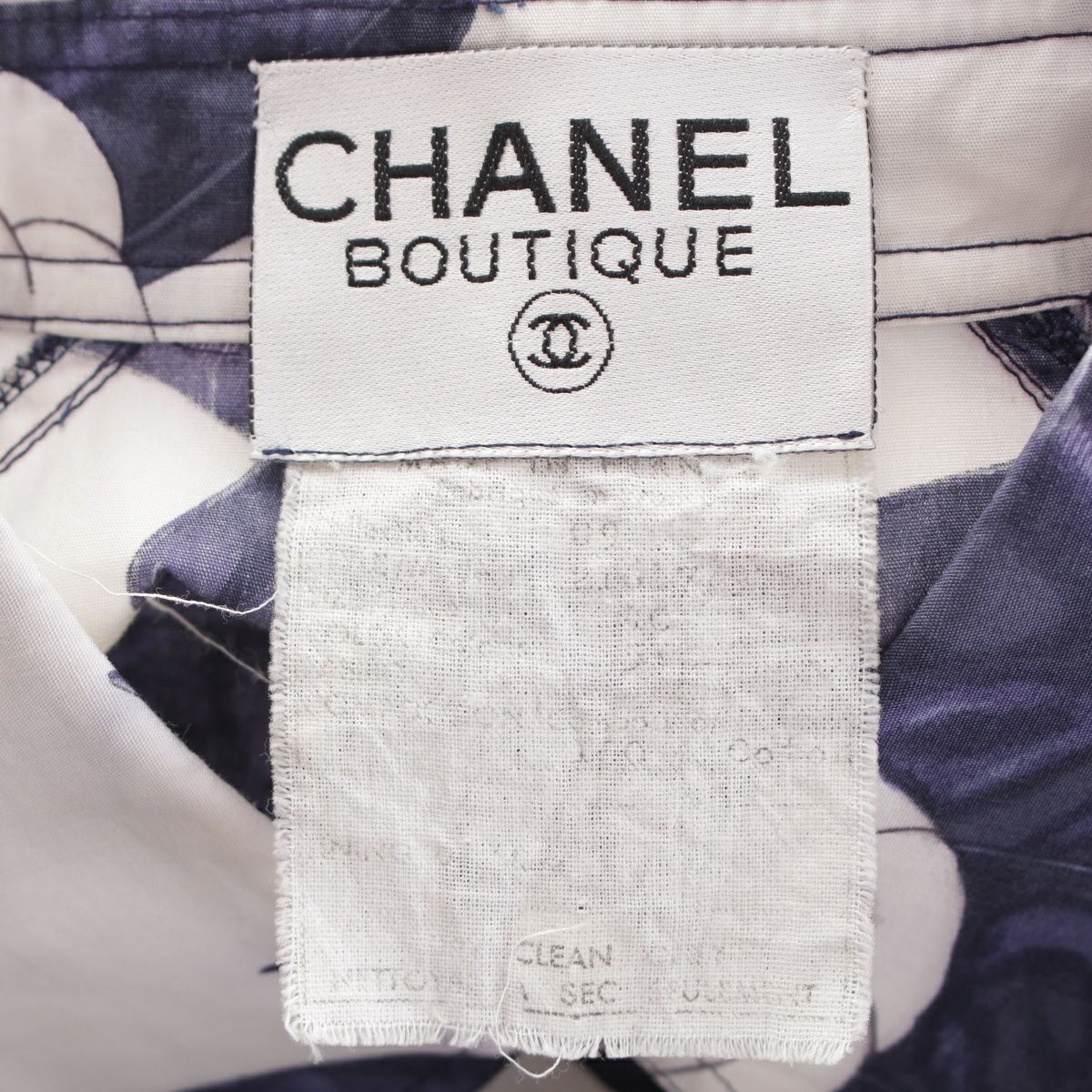 シャネル 1987年 80S ヴィンテージ カメリア リボン 長袖シャツ ジャケット ブラック ホワイト