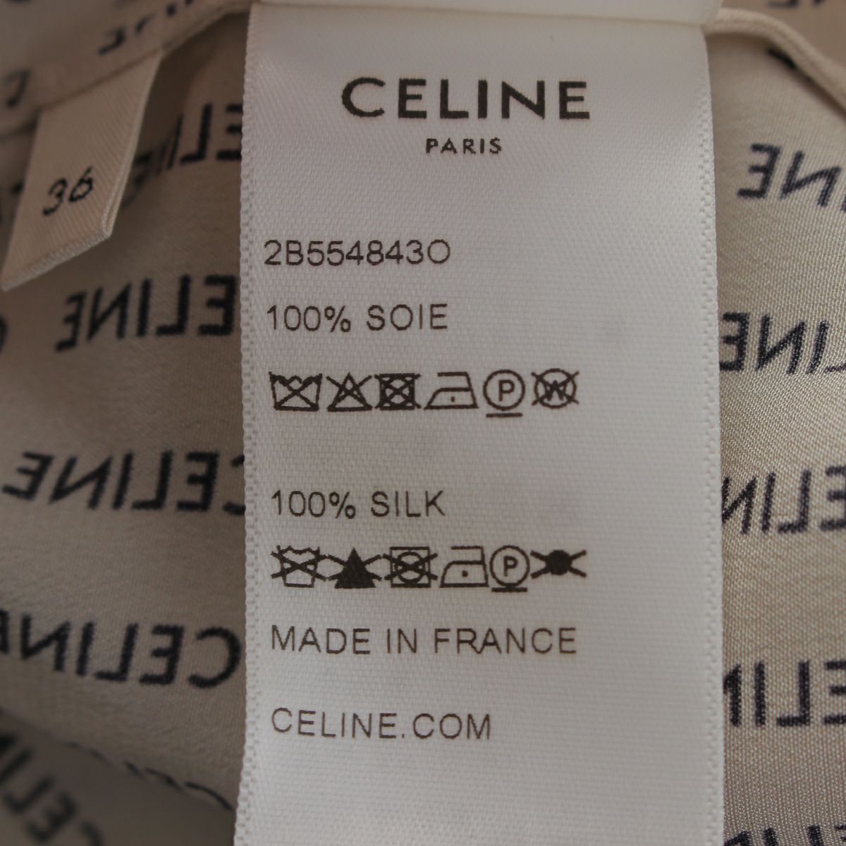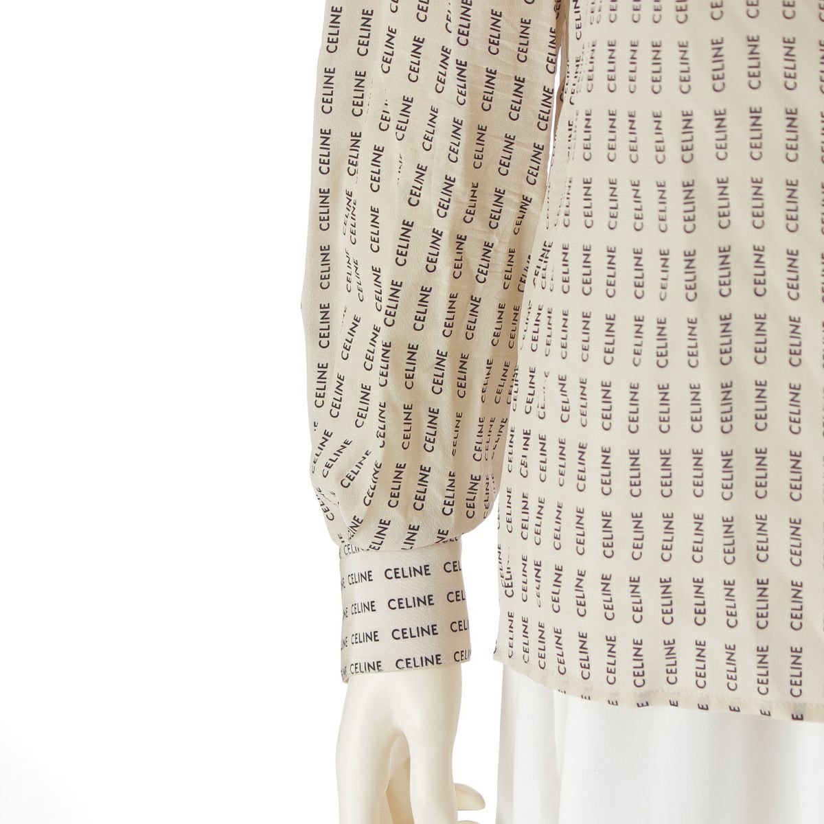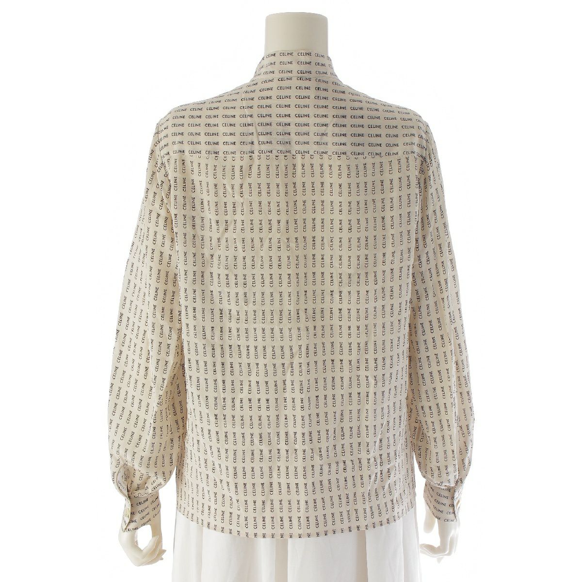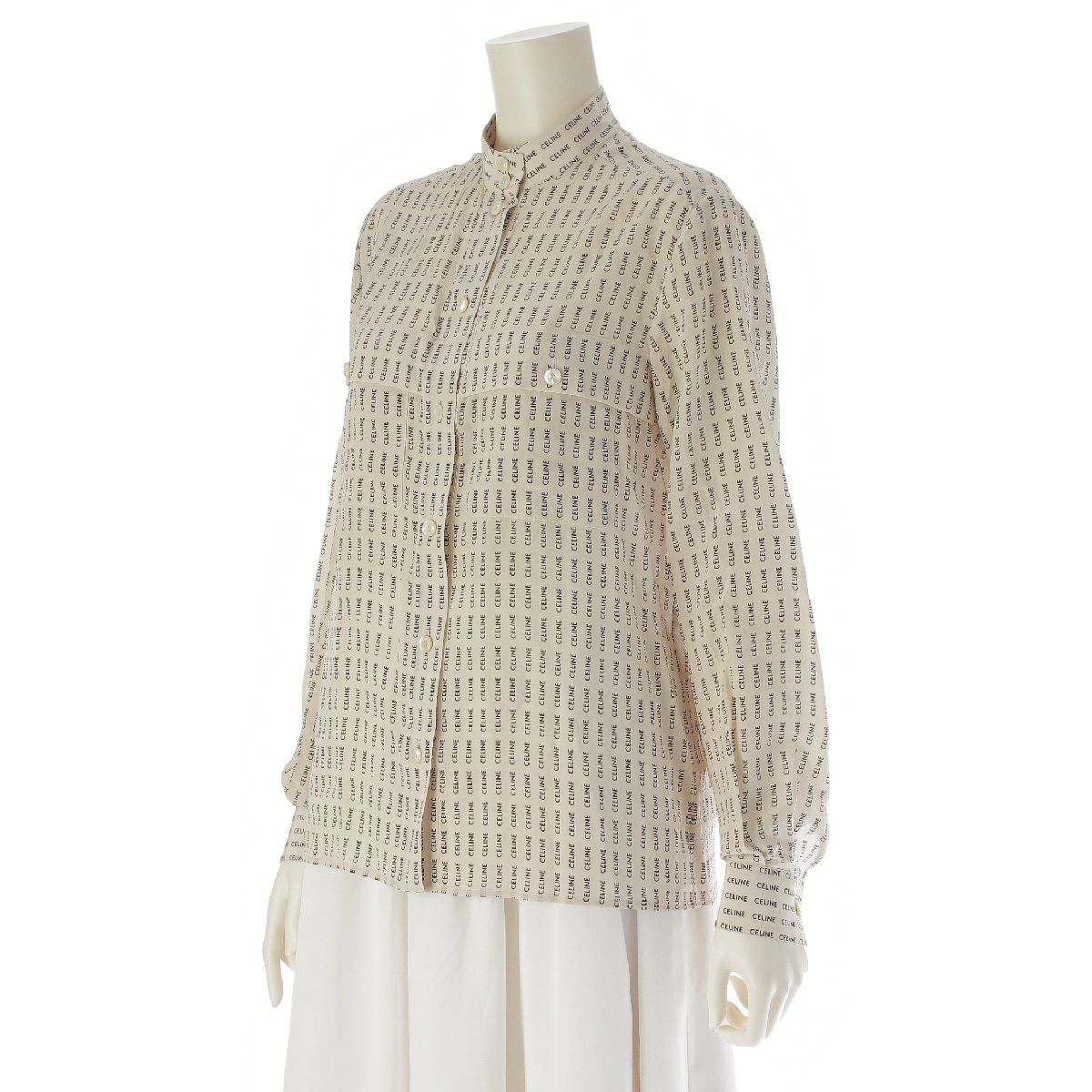 セリーヌ シルク ロゴ 総柄 トップス バンドカラー ブラウス 2B554843O オフホワイト ブラック 36