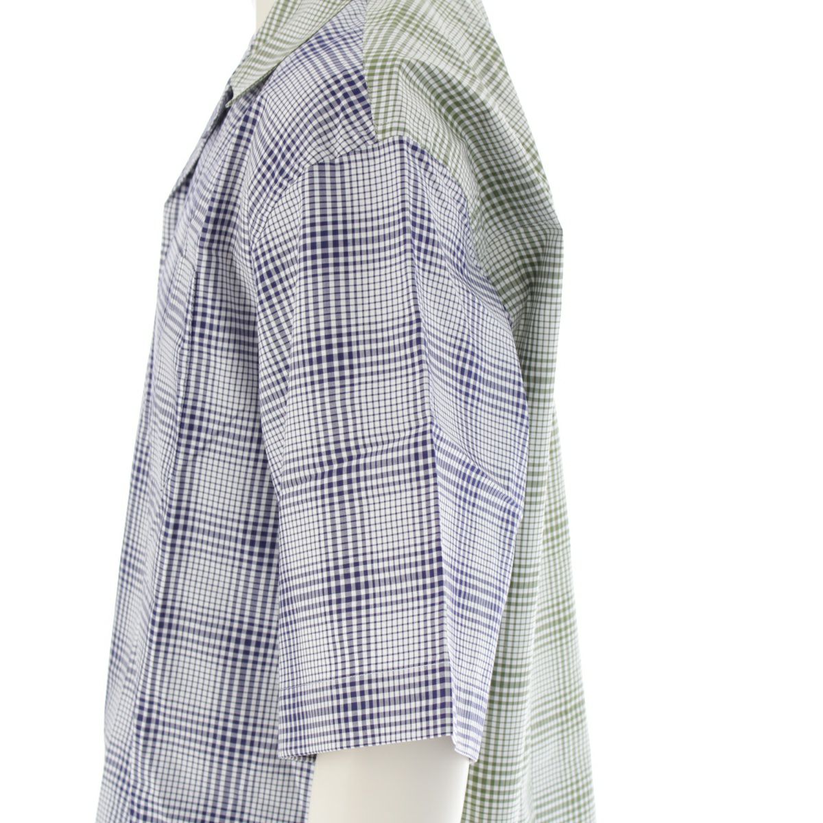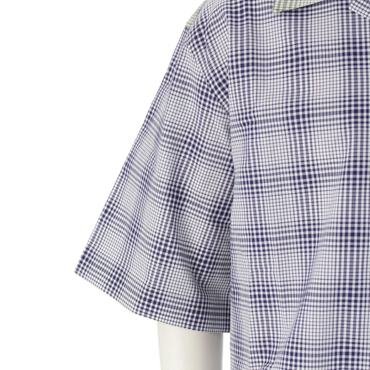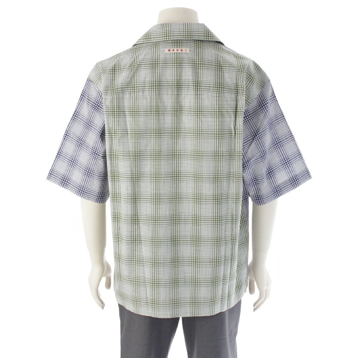 マルニ 23AW コットン クレイジーパターン チェック総柄 半袖シャツ オープンカラー トップス ネイビー×グリーン×ホワイト 48