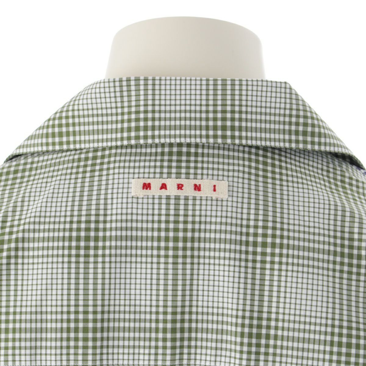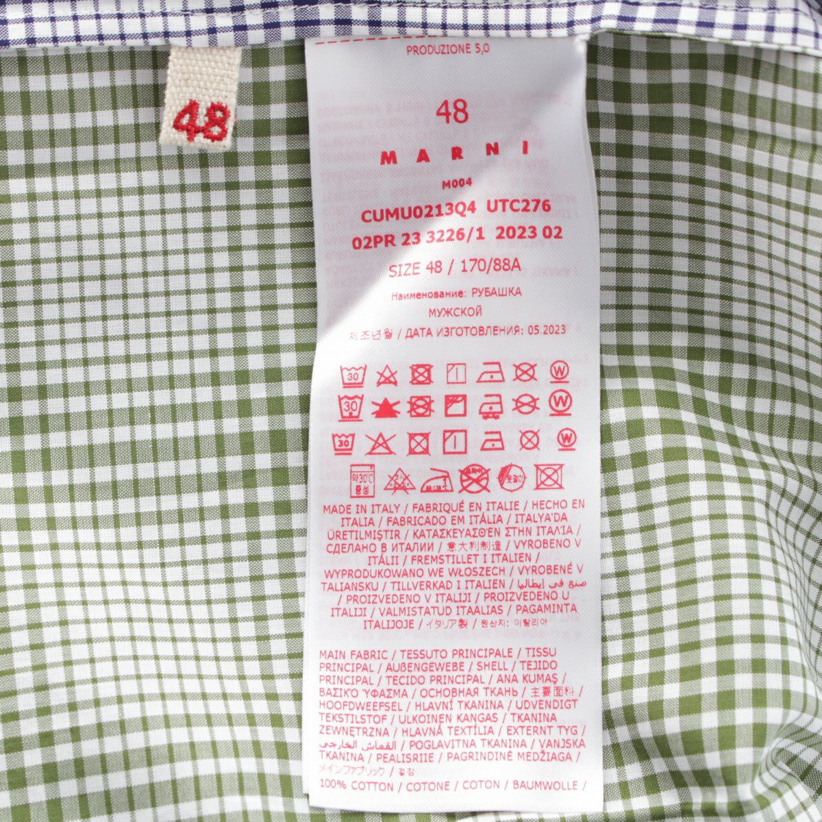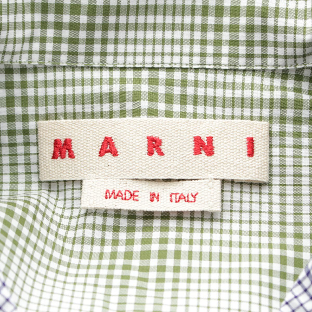 マルニ 23AW コットン クレイジーパターン チェック総柄 半袖シャツ オープンカラー トップス ネイビー×グリーン×ホワイト 48