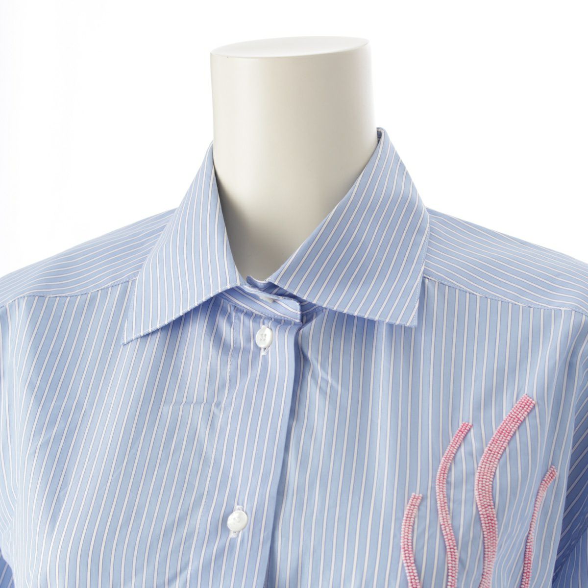 ヴァレンティノ コットン クロップド ストライプ リップ柄 長袖シャツ トップス ブルゾン ジャケット ライトブルー 40