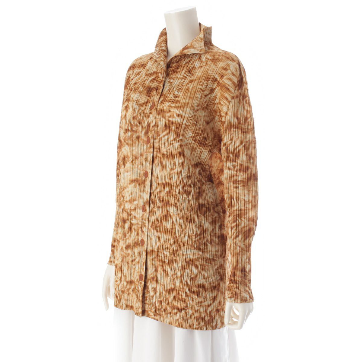 プリーツプリーズ イッセイミヤケ 総柄 長袖シャツ トップス ブラウス PP03-JD691 ブラウン 3