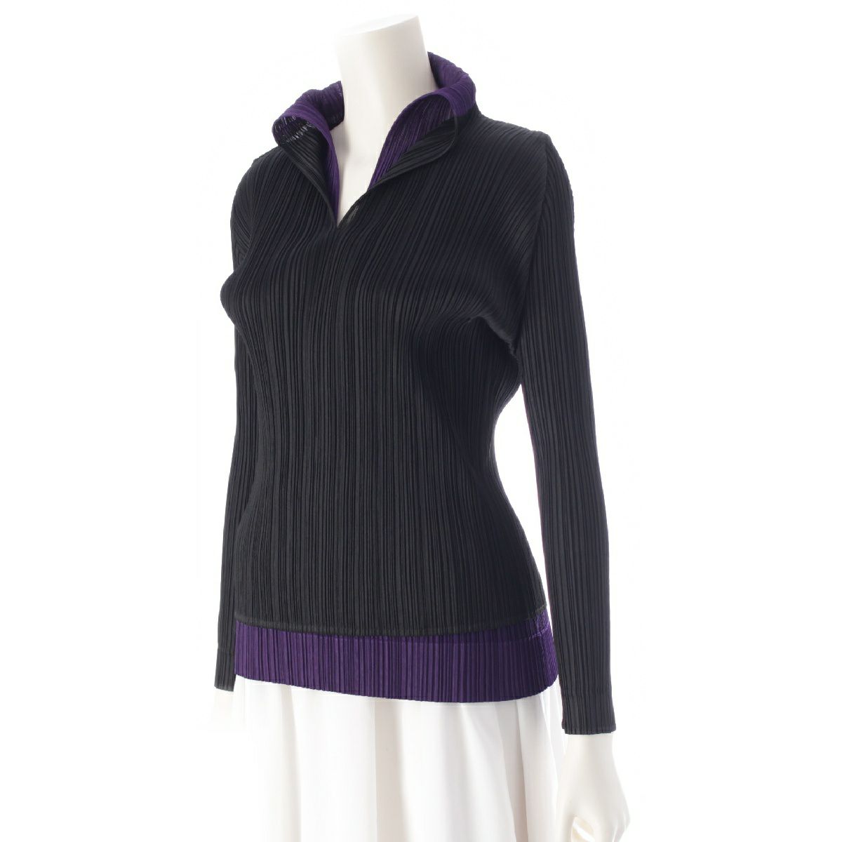 プリーツプリーズ イッセイミヤケ レイヤード ブラウス トップス PP93-JK594 ブラック×パープル 3