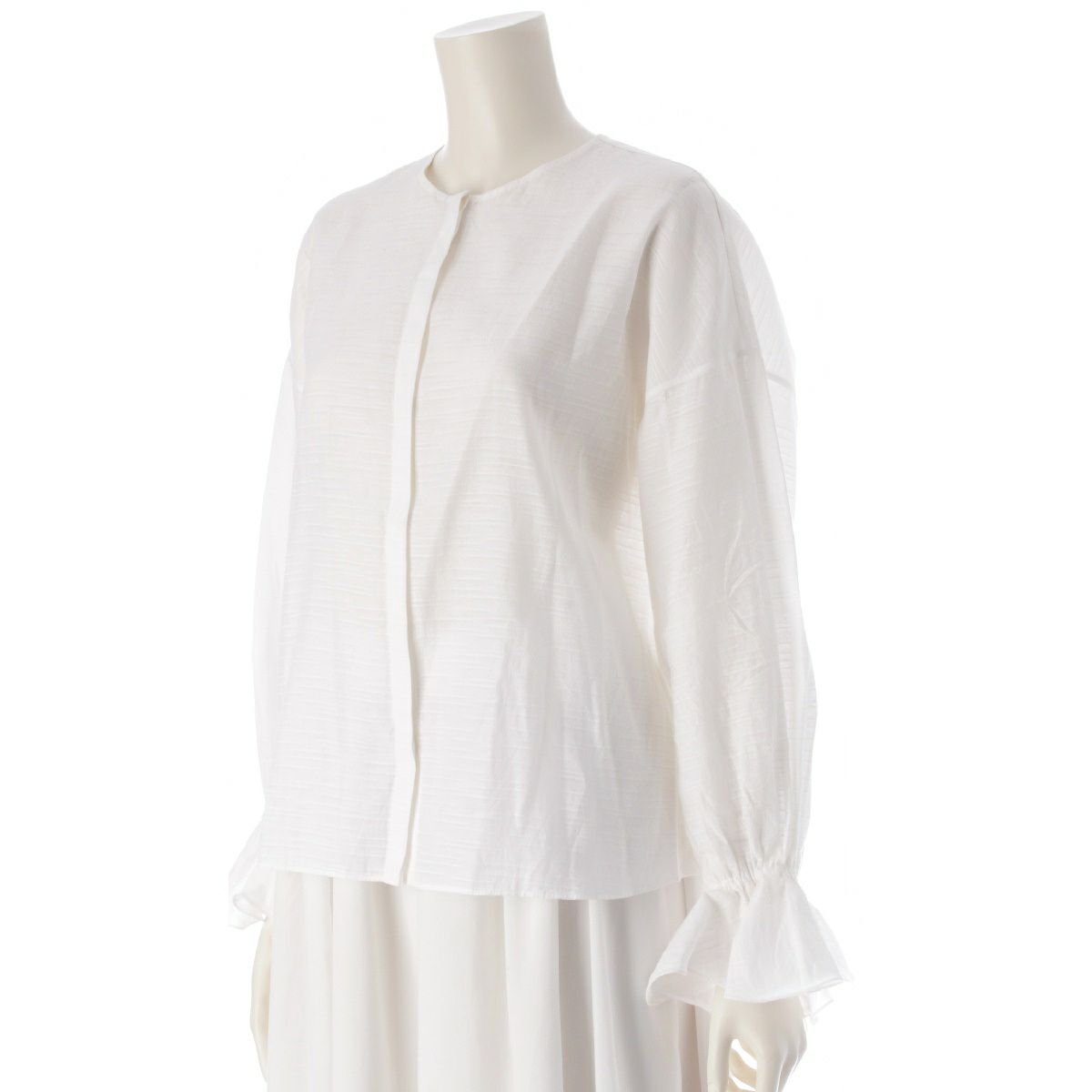 ドゥロワー RESORT2 コットン シルク フリルカフ 長袖 ブラウス トップス シャツ 6521-299-1075 ホワイト 36