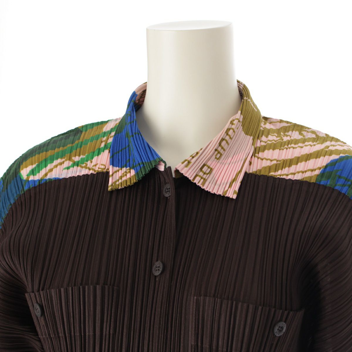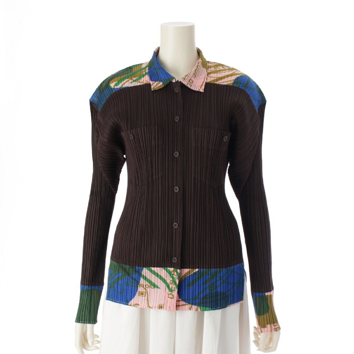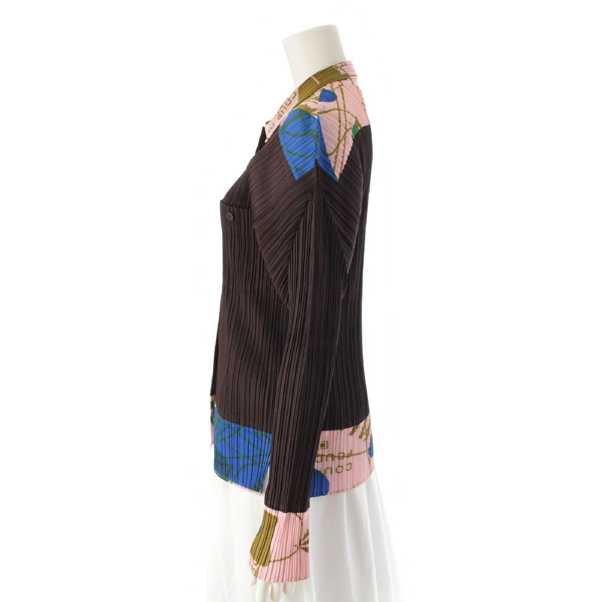 プリーツプリーズ イッセイミヤケ グラフィック プリーツ 長袖シャツ ジャケット 英字 PP22-JJ773 ブラウン ピンク ブルー 3