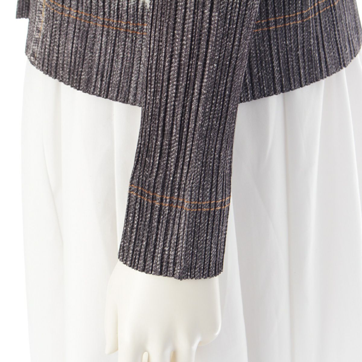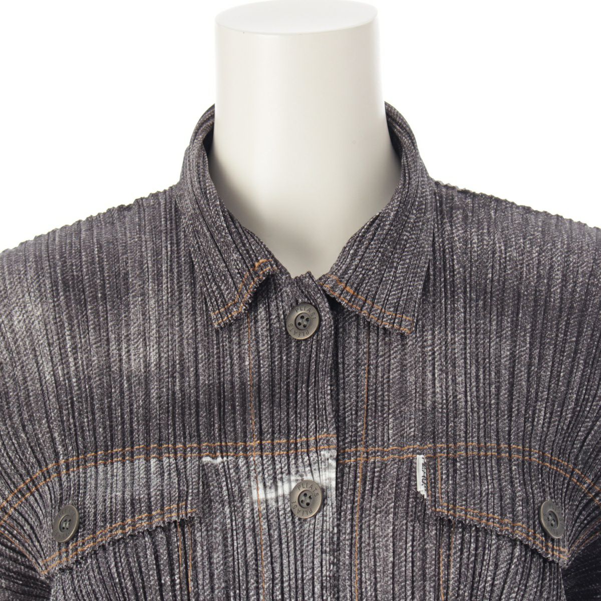 プリーツプリーズ イッセイミヤケ デニム転写 ダメージデザイン 長袖シャツ ジャケット ブラウス トップス PP71-JD536 グレー 3