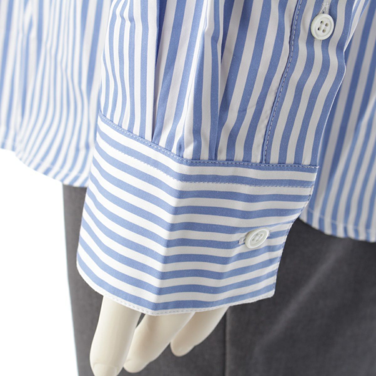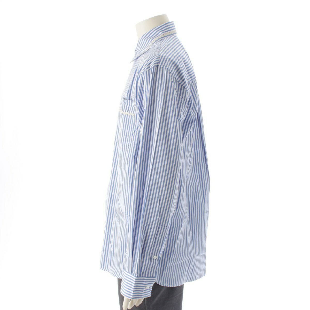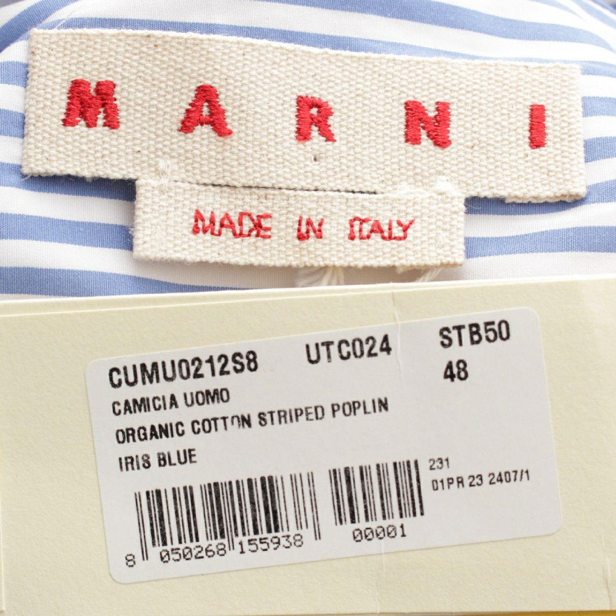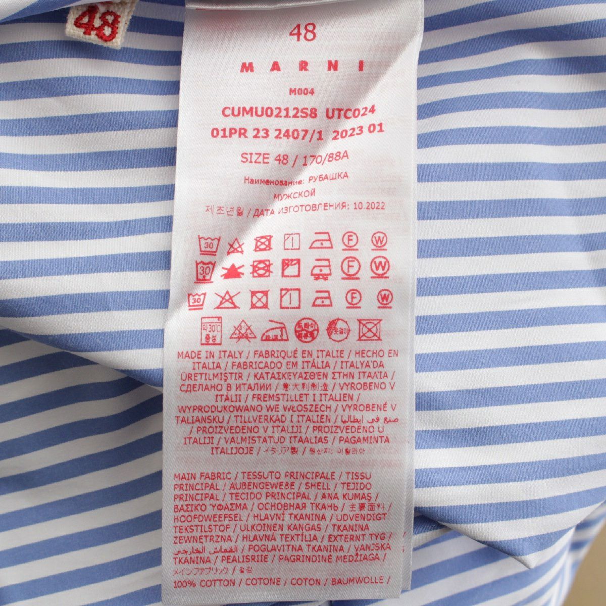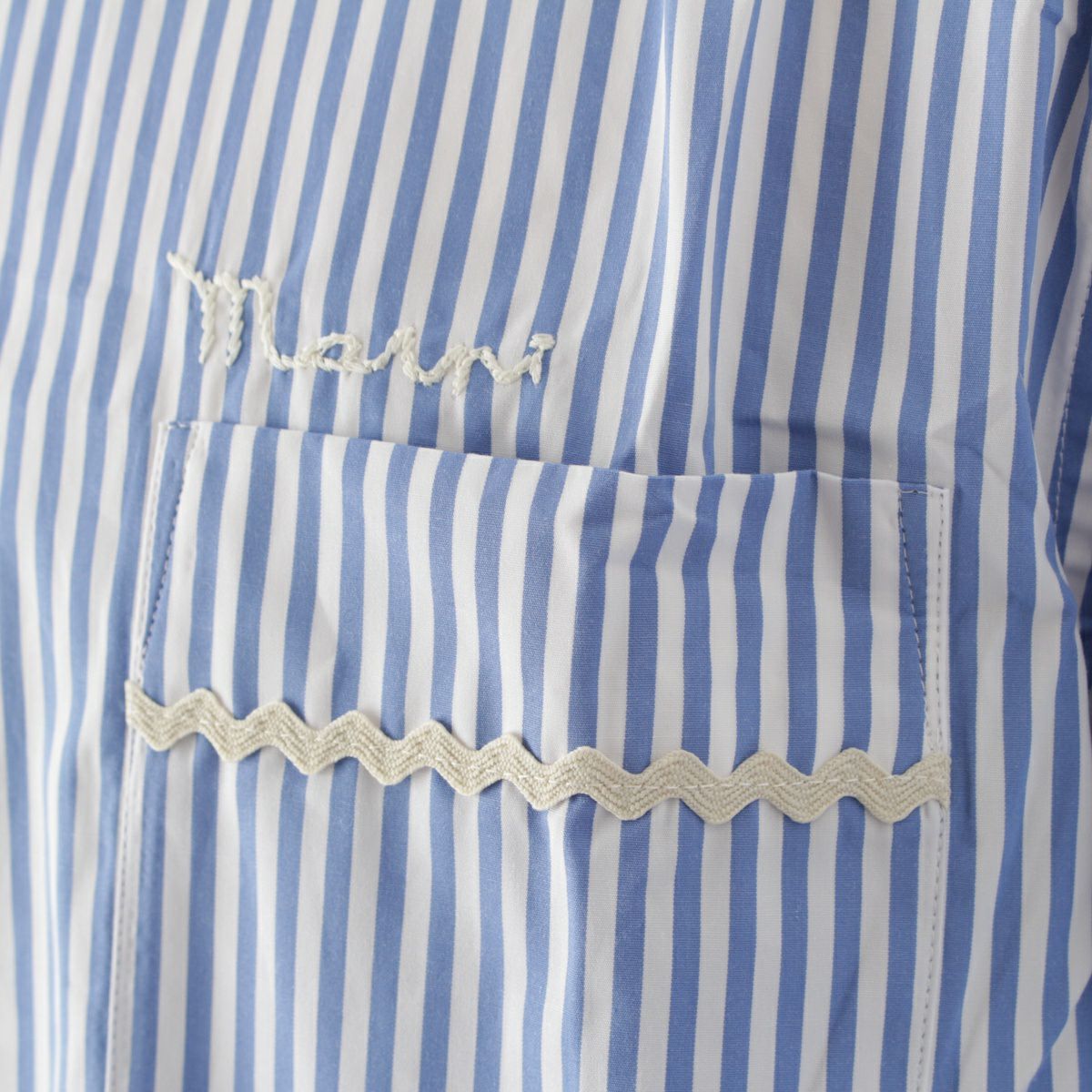 マルニ 23SS オーガニックコットン ロゴ刺繍 胸ポケット ストライプ 長袖シャツ トップス CUMU0212S8 ブルー ホワイト 48