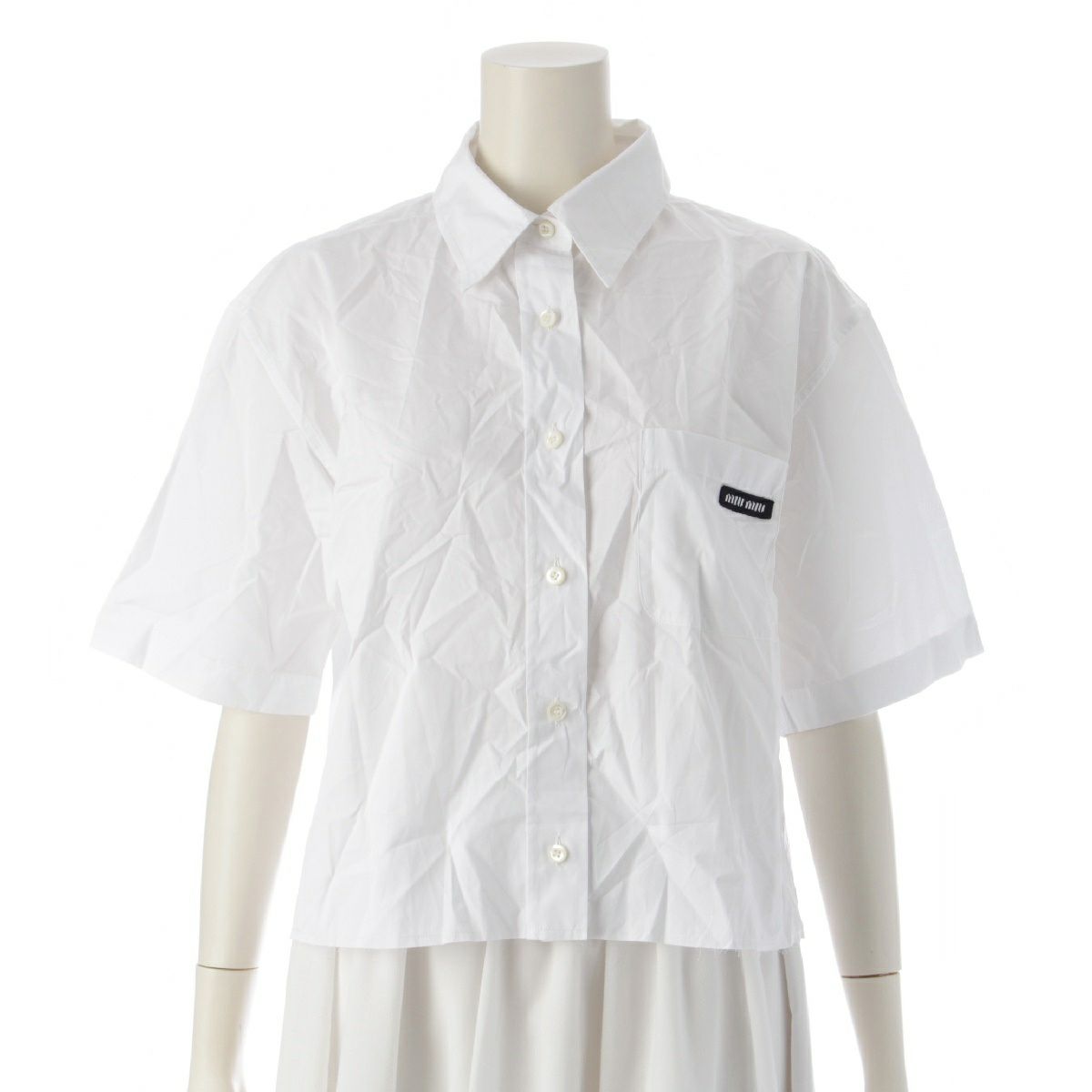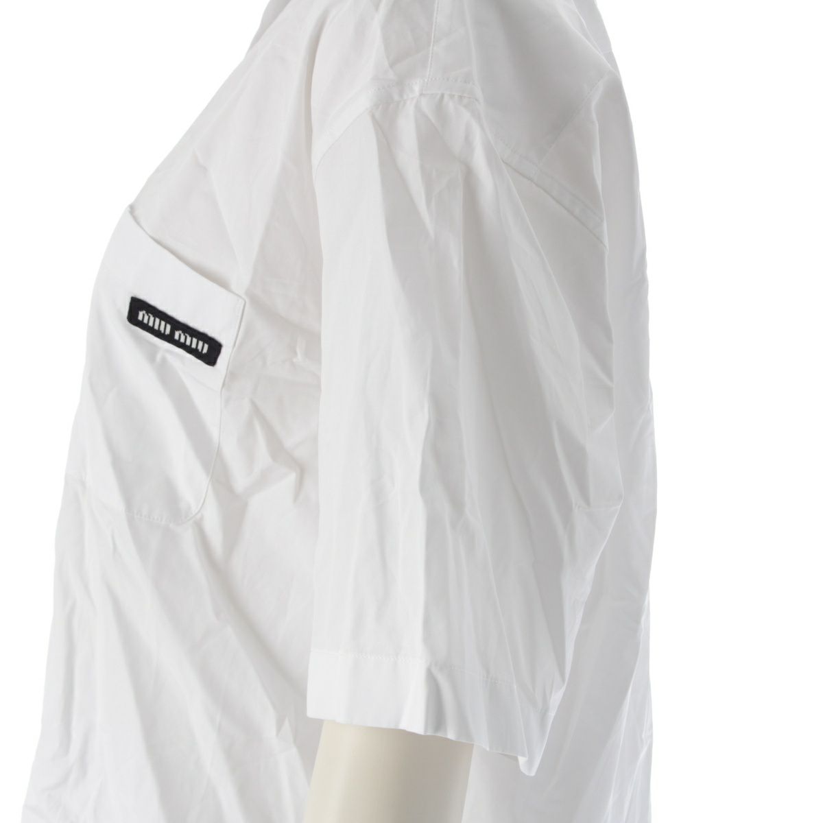 ミュウミュウ 23年 コットンポプリン ロゴ 半袖シャツ トップス MK1743 ホワイト 40