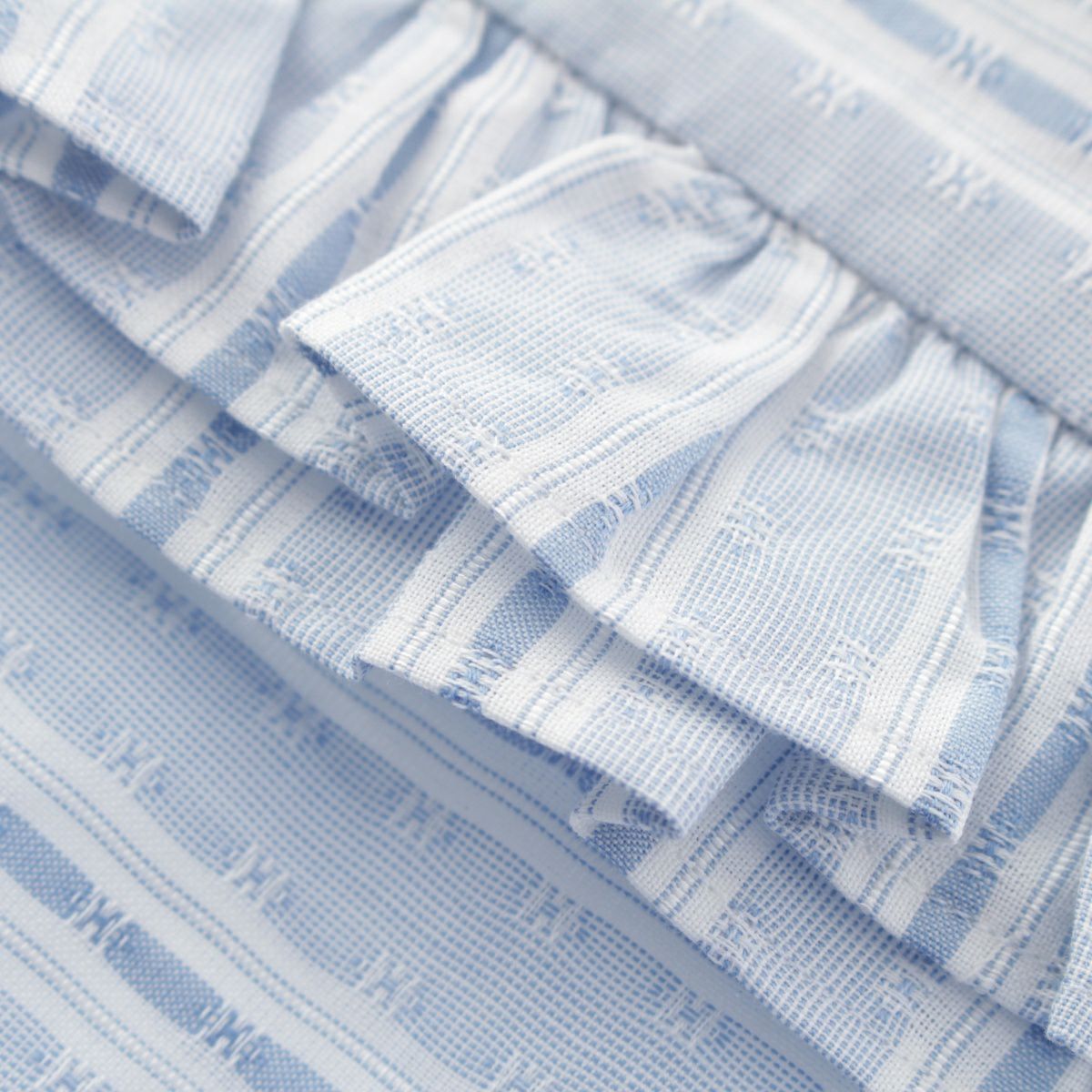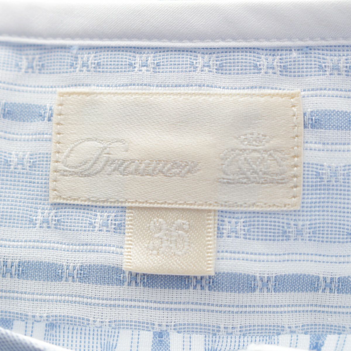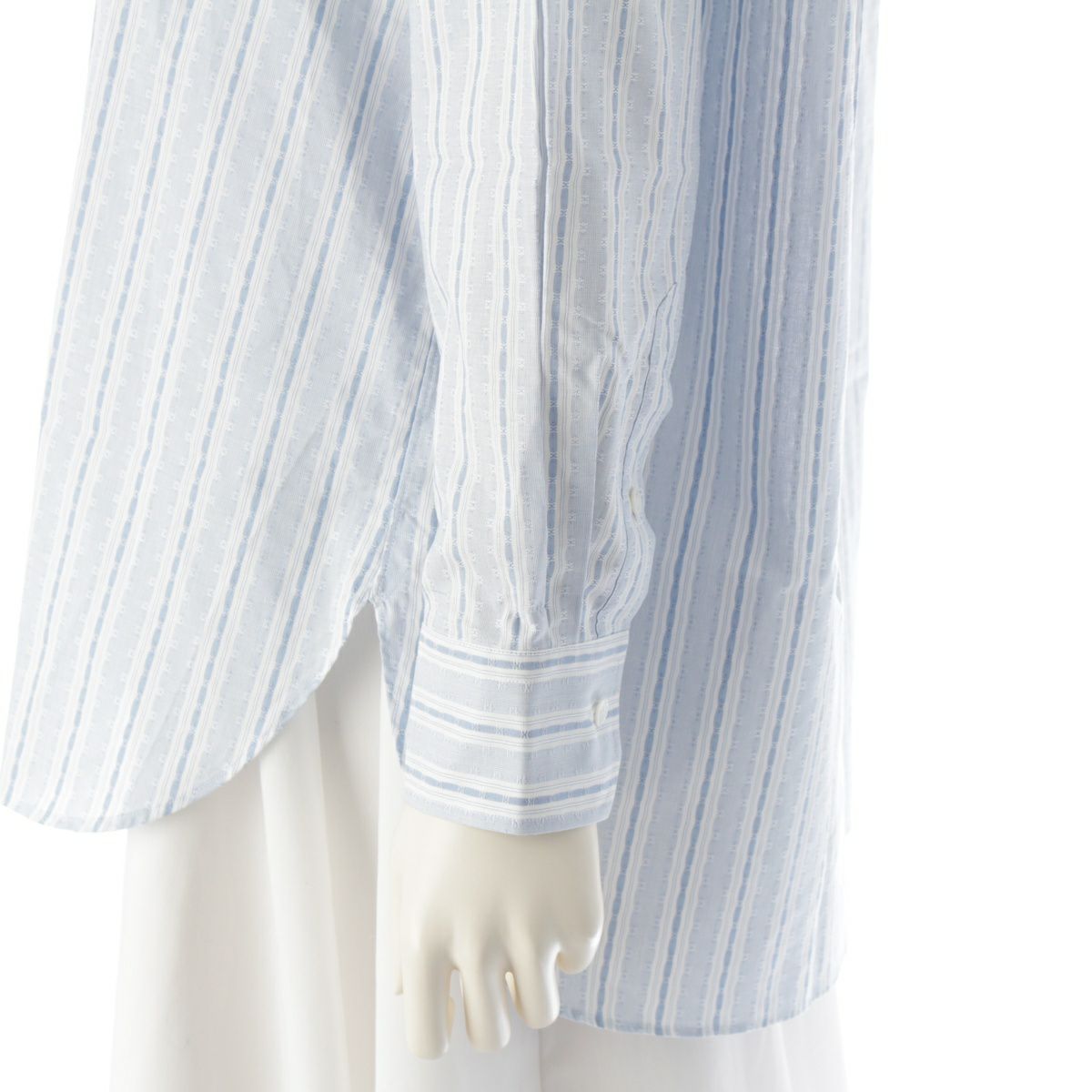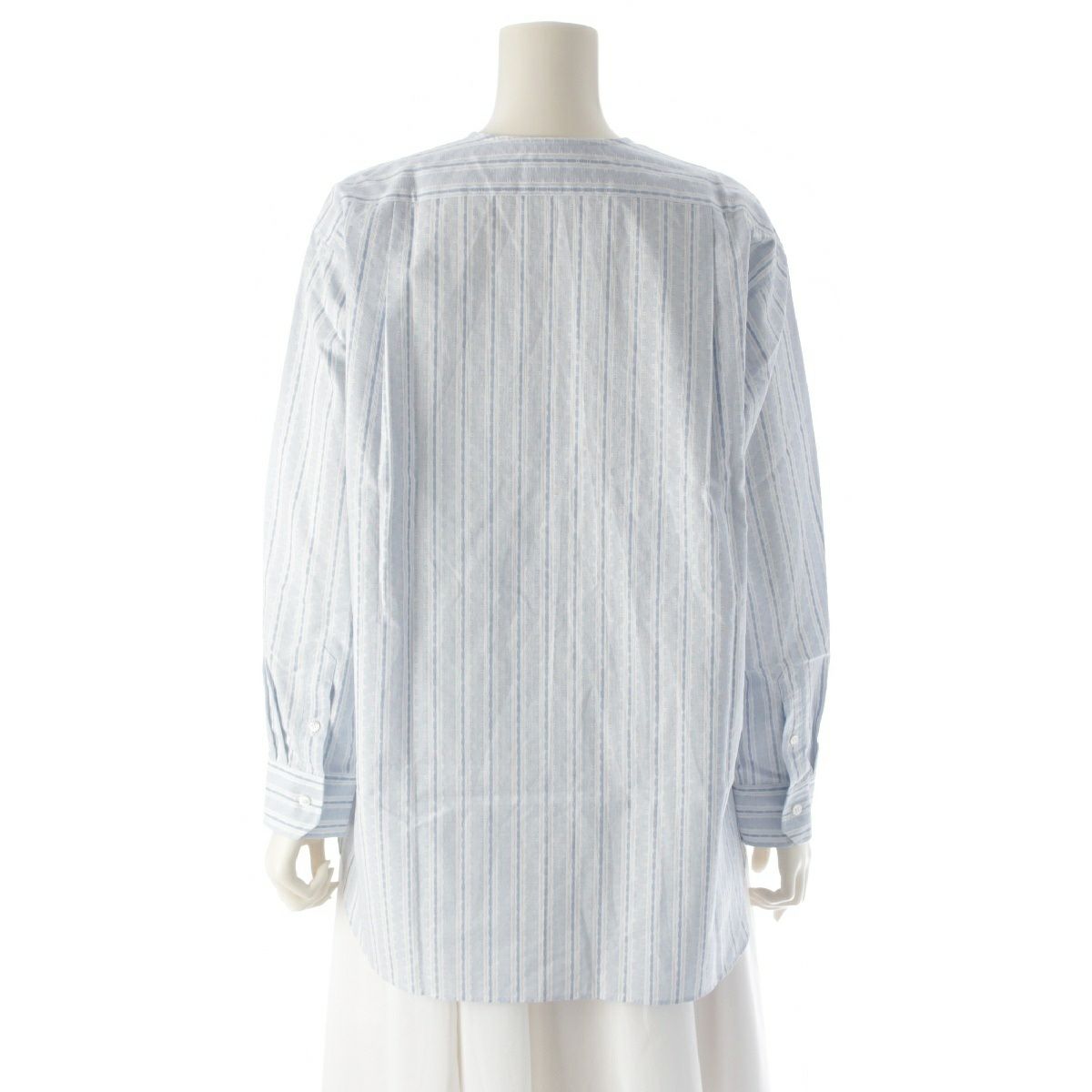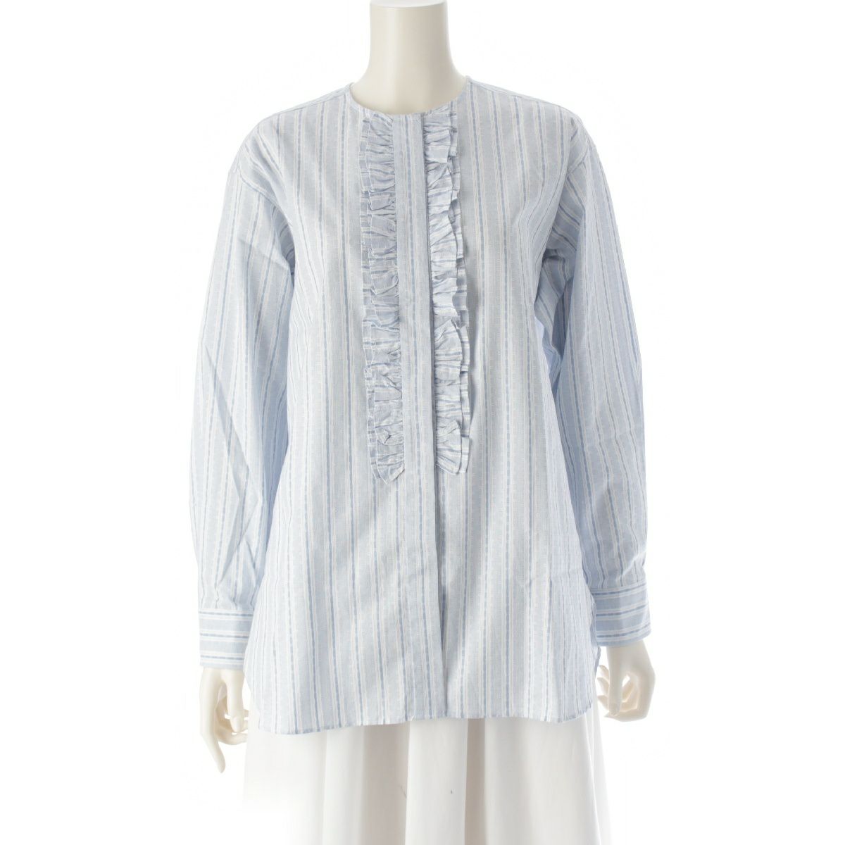 ドゥロワー 22SS コットン ストライプドビー フリル ノーカラー 長袖シャツ ブラウス トップス 6511-218-0478 ホワイト×ブルー 36