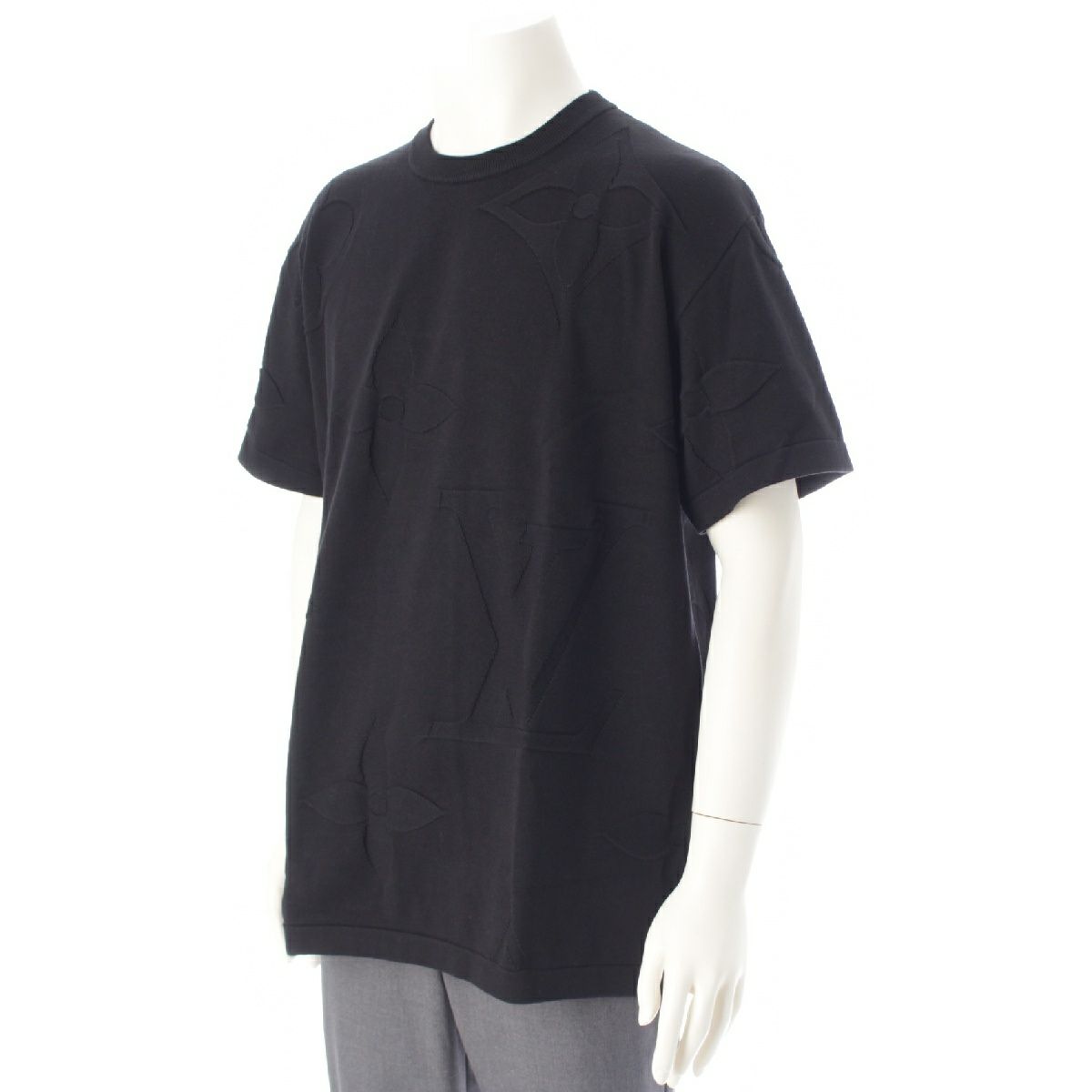 ルイヴィトン 25年 コットン モノグラムエンボス 半袖シャツ 1AFYEZ ブラック L