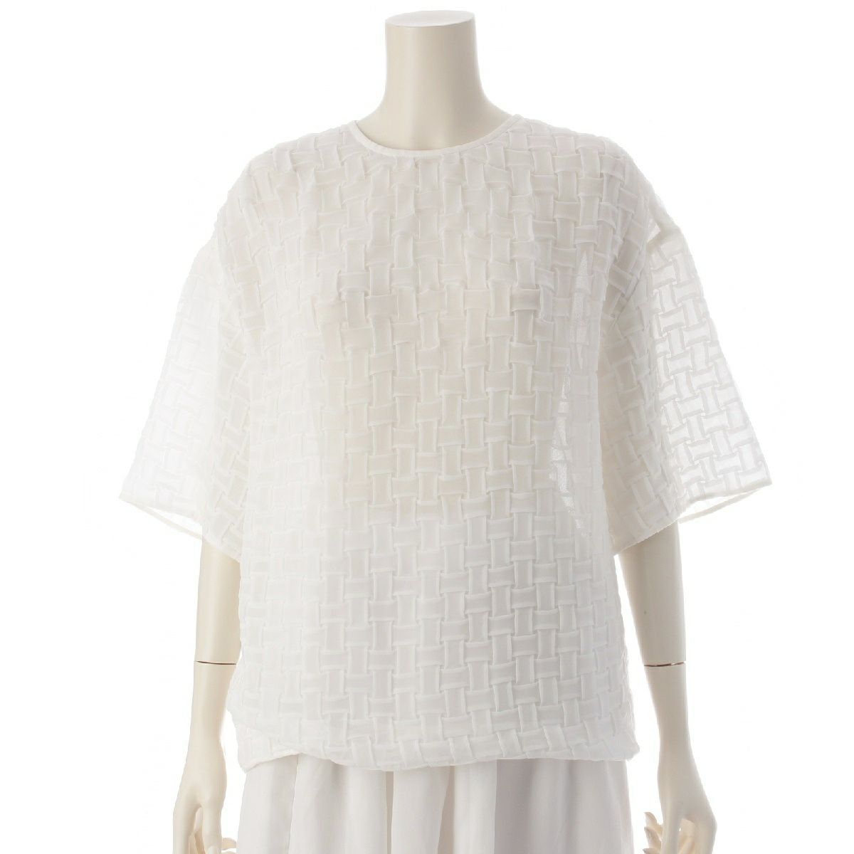 パルトワ クロスデザイン イントレチャート バックジップ リングジップ ブラウス 半袖 トップス 6521-343-1038 ホワイト 2