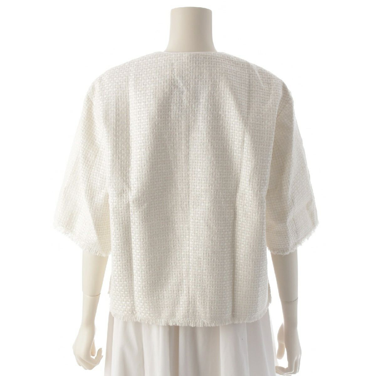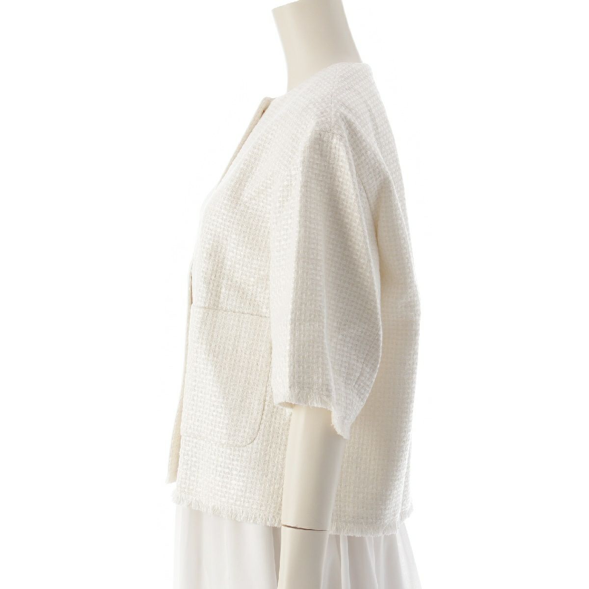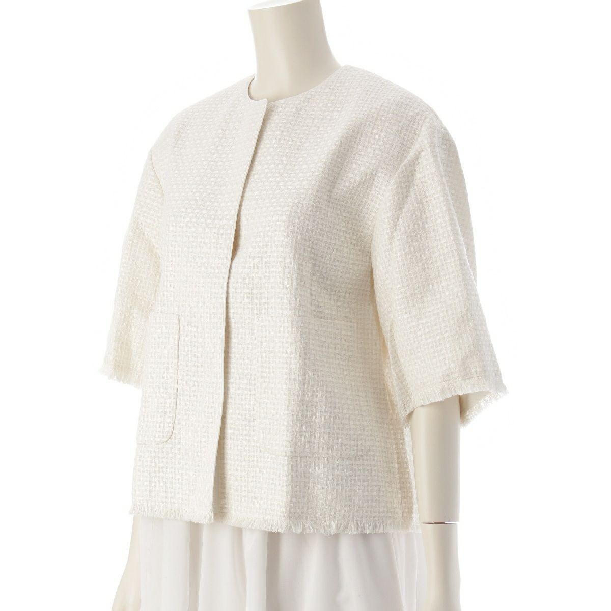 ドゥロワー 24SS SUMMER シルク フリンジショートスリーブ ノーカラー ブラウス トップス ジャケット 6521-299-1191 ホワイト