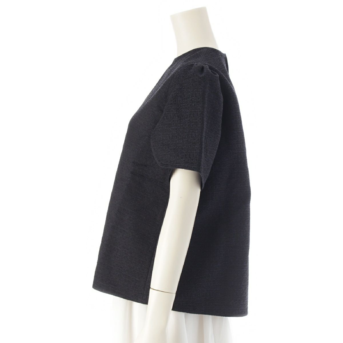 ドゥロワー コットン シルク カスリジャガード ブラウス シャツ 6521-299-1116 ブラック ネイビー 36