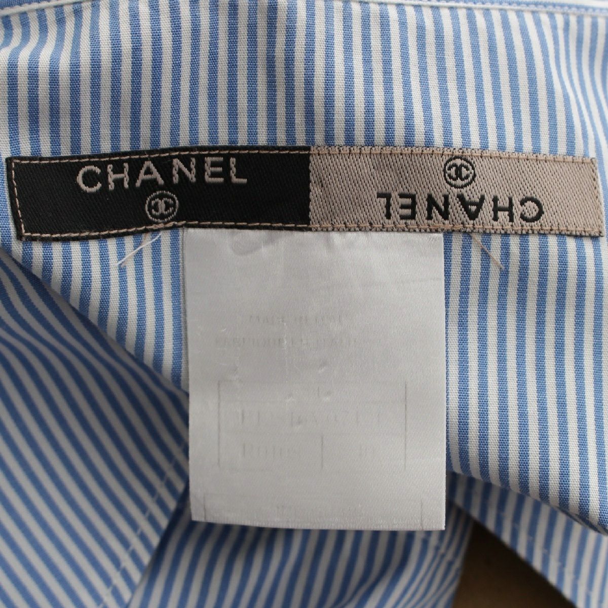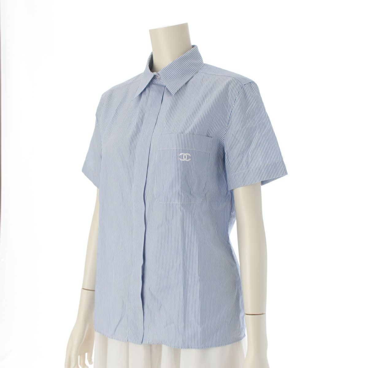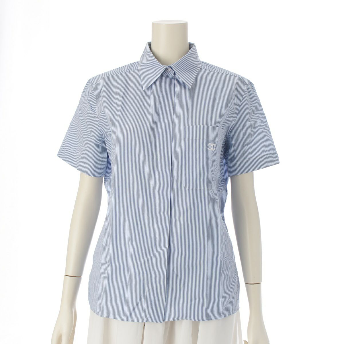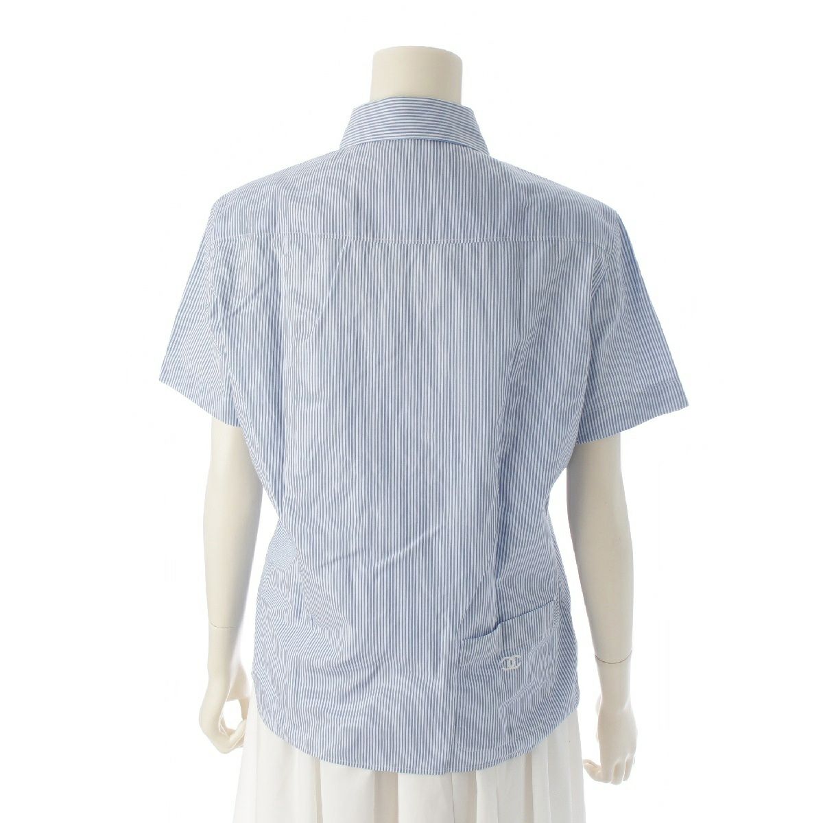シャネル 99P ココマーク 刺繍 背面ポケットデザイン 半袖シャツ トップス ホワイト ブルー