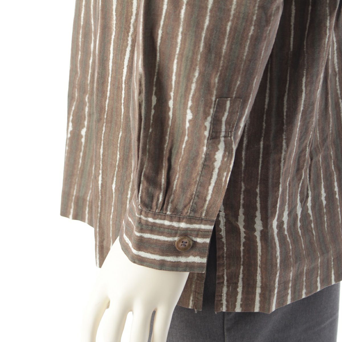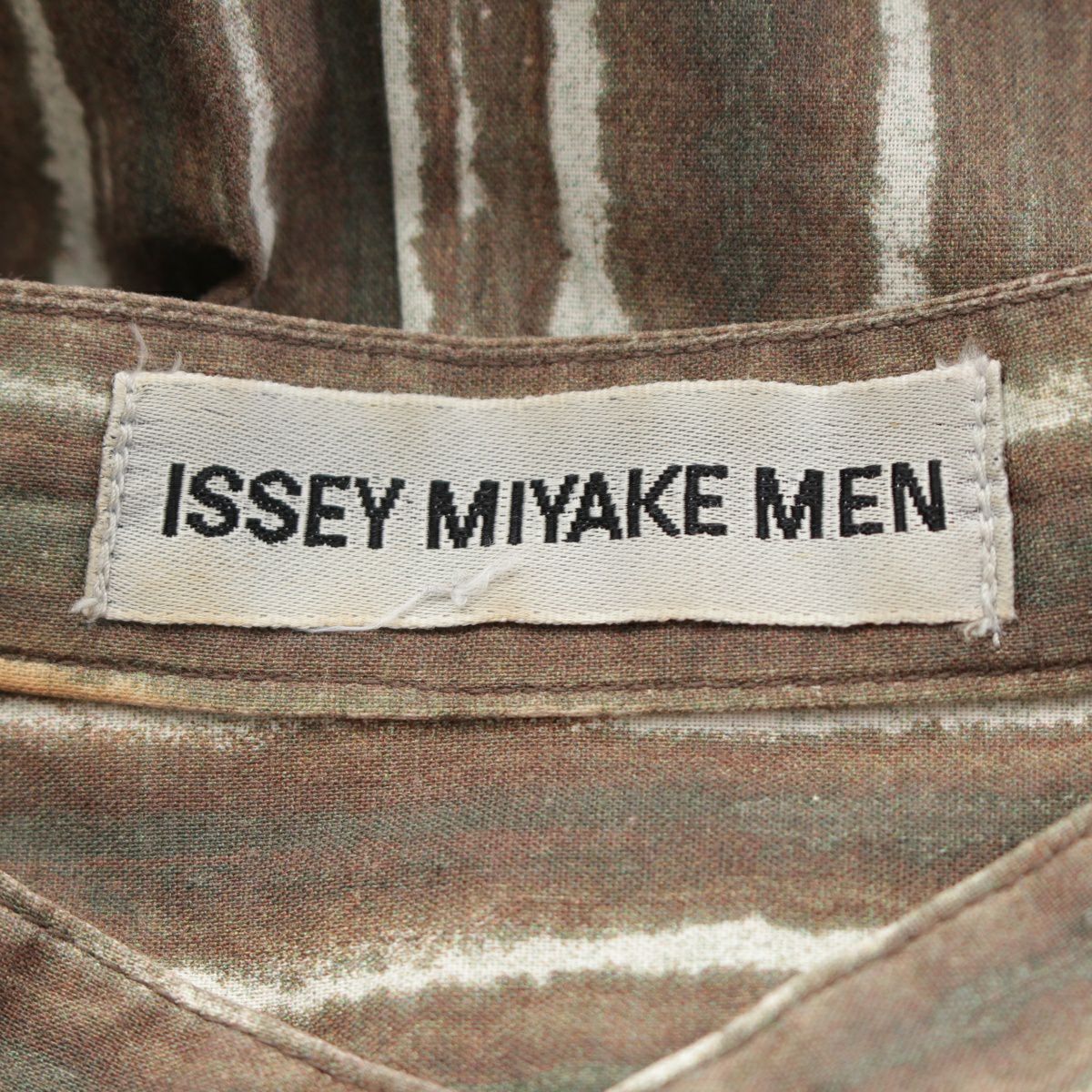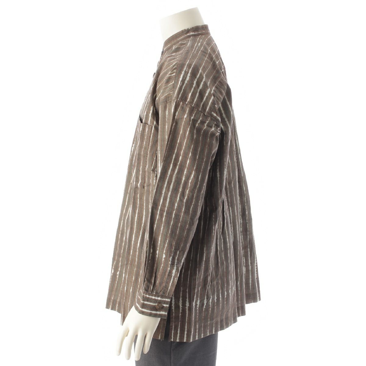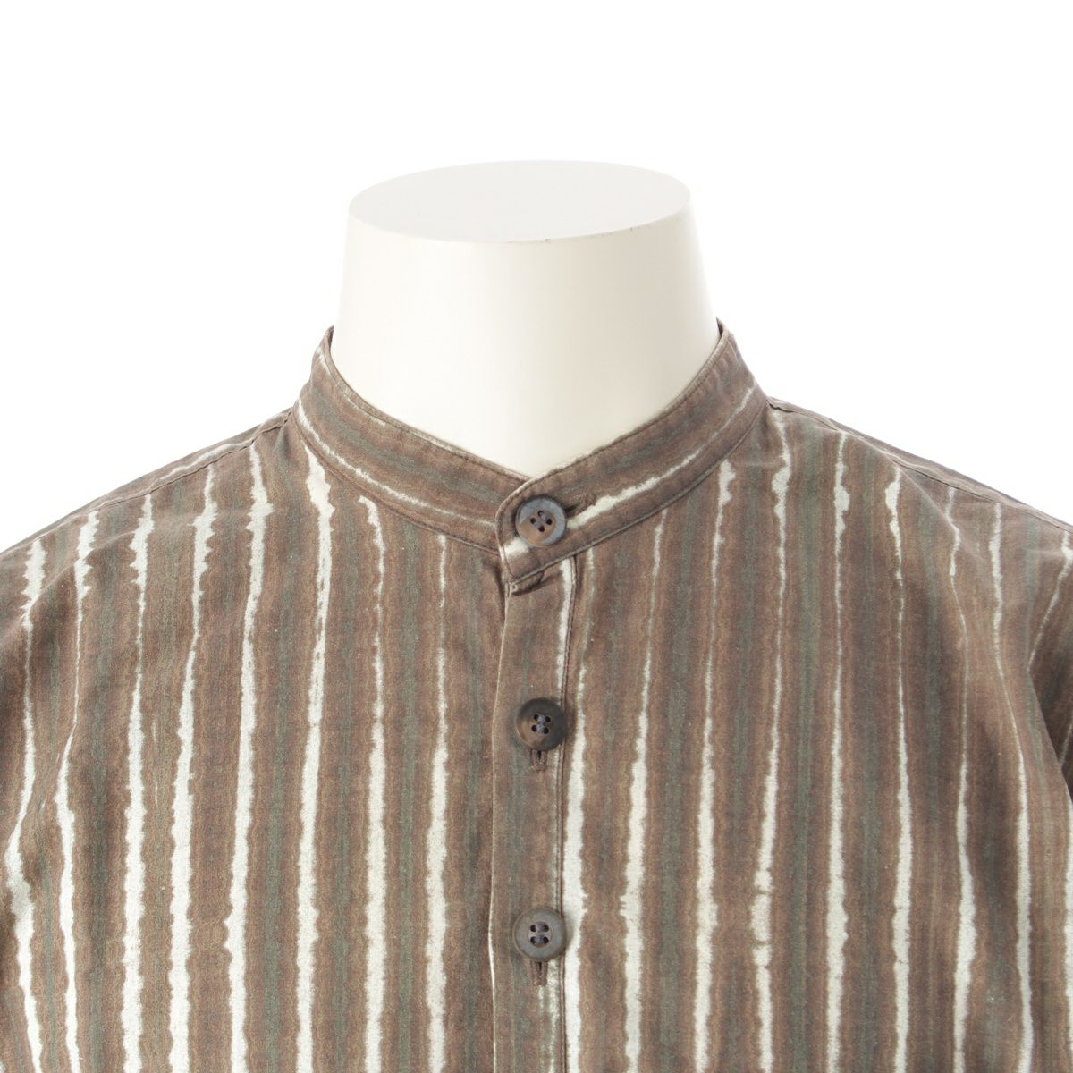 イッセイミヤケ メン コットン ハーフボタン ストライプ スタンドカラー 長袖シャツ トップス ブラウン M